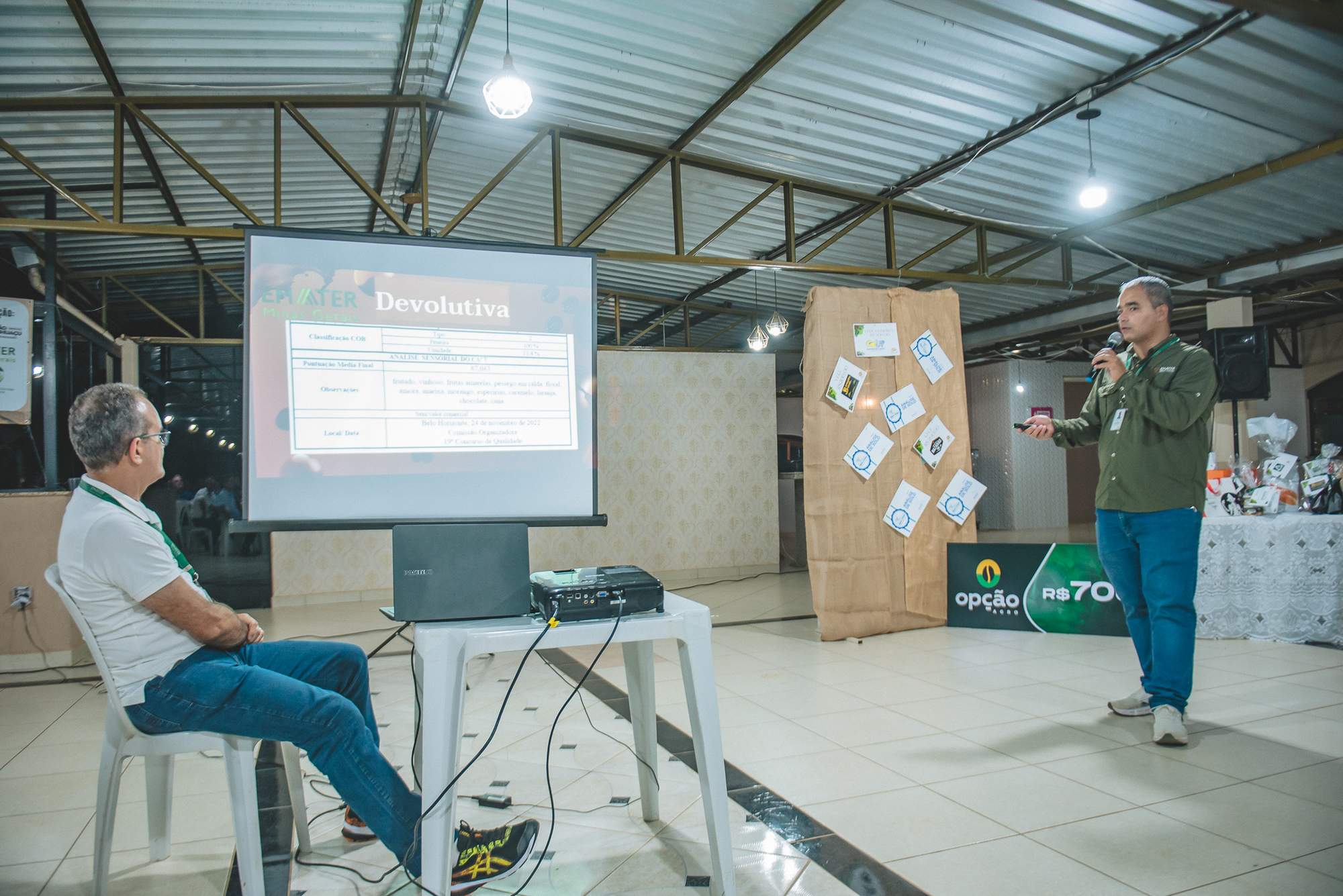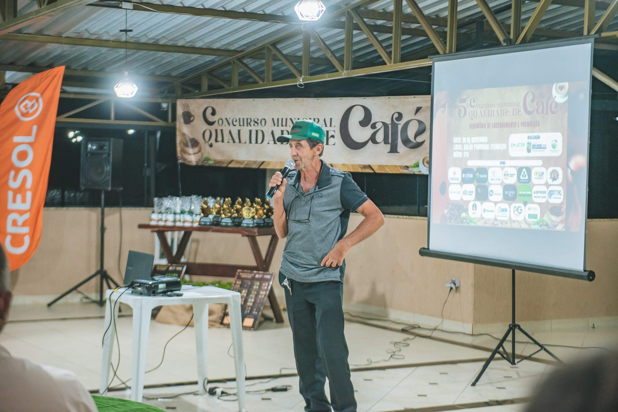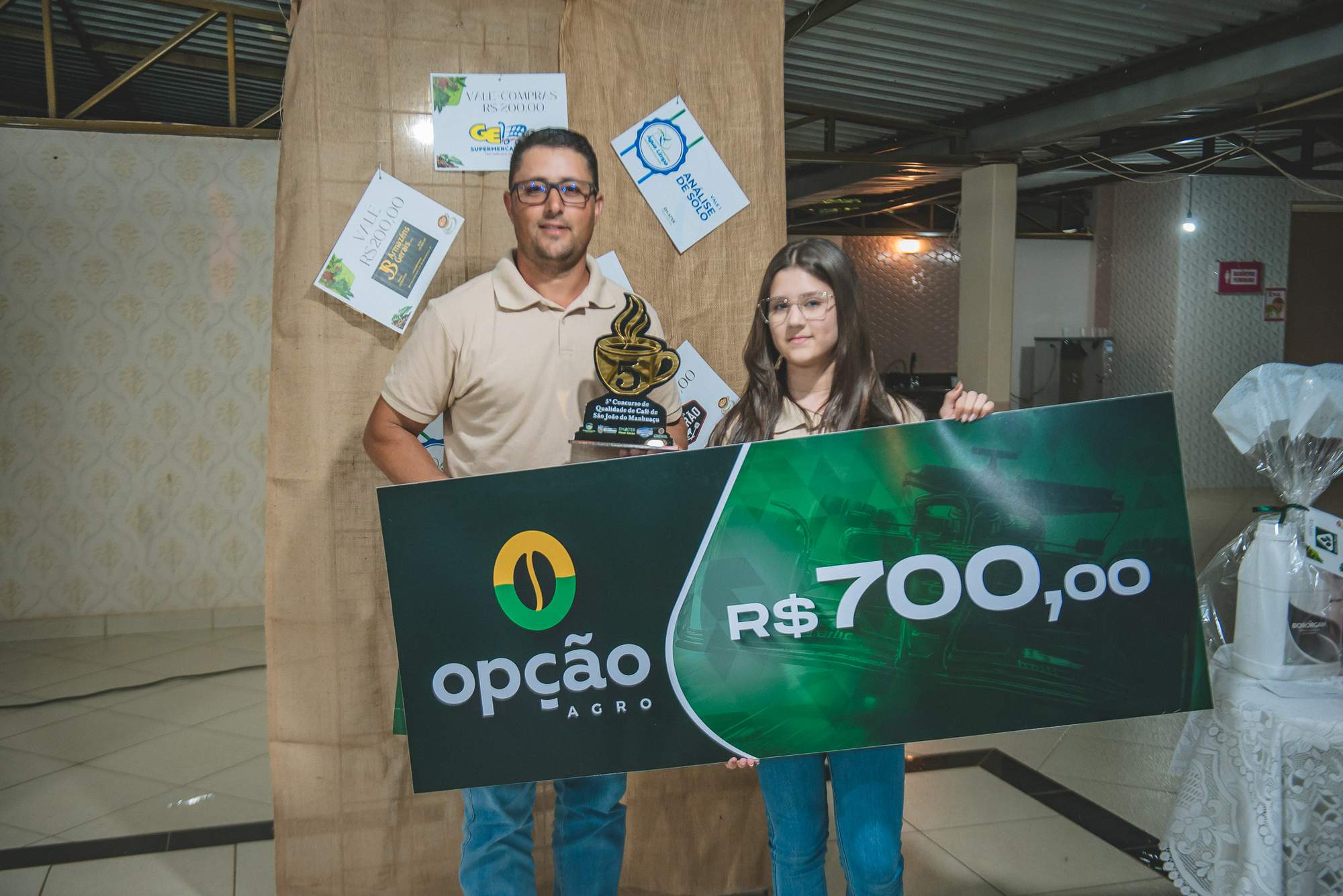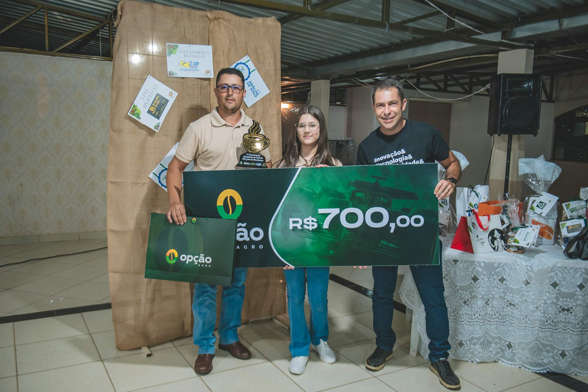 SÃO JOÃO DO MANHUAÇU (MG) - Produtores rurais de diversas comunidades participaram da cerimônia de premiação do 5º Concurso de Qualidade de Café de São João do Manhuaçu, realizada com apoio da Secretaria Municipal de Agricultura, Prefeitura de São João do Manhuaçu e Emater-MG. O evento reuniu autoridades locais, técnicos da Emater e representantes do setor cafeeiro.