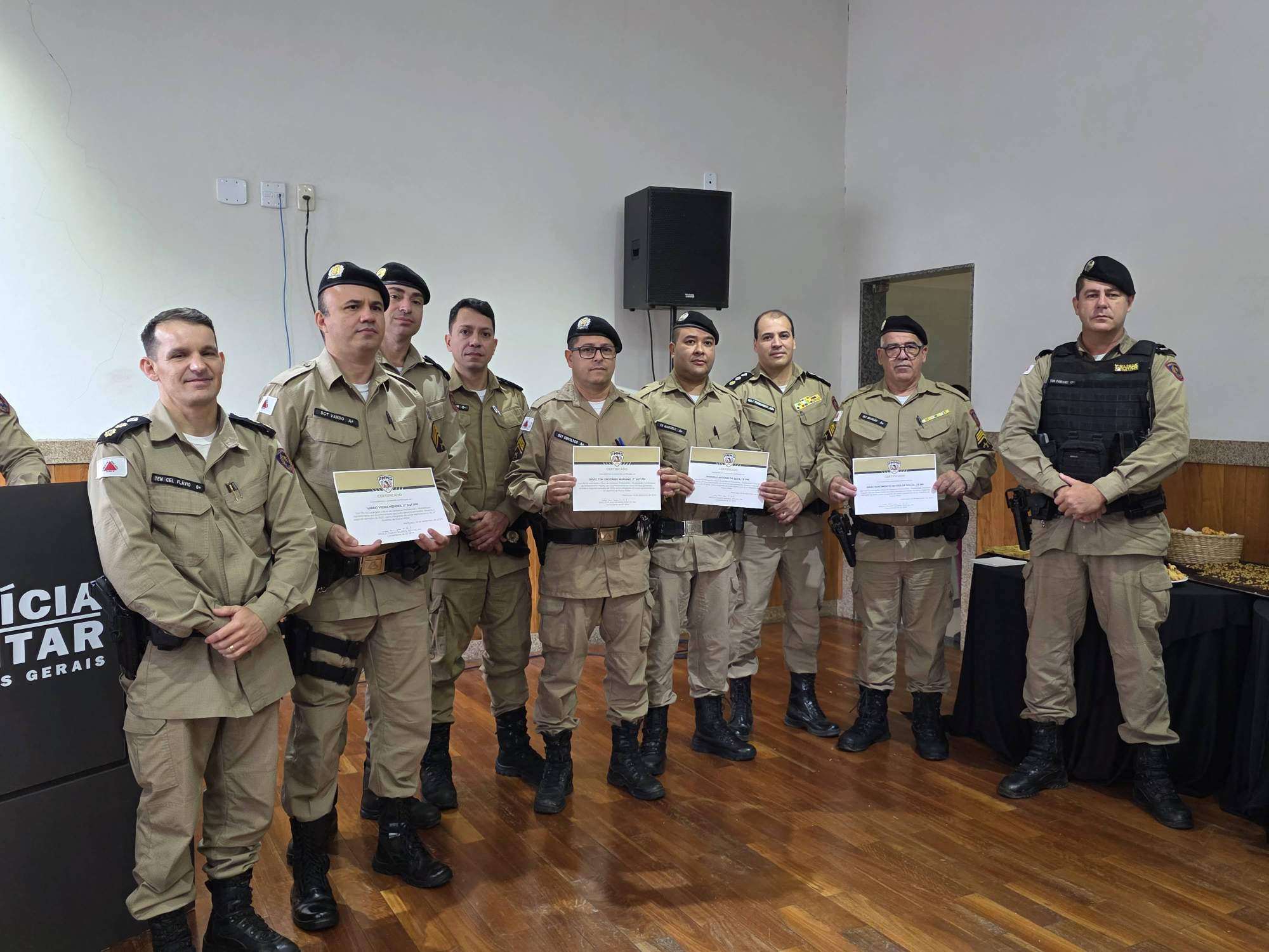 A solenidade também premiou os militares que participaram da “Ocorrência de Placa do Ano”, uma megaoperação realizada em junho, que resultou na prisão de sete pessoas envolvidas no roubo de uma carga de café em Vermelho Novo. A ação mobilizou equipes em solo e patrulhamento aéreo, recuperando veículos e toda a carga roubada na região de Sericita e Pedra Bonita.