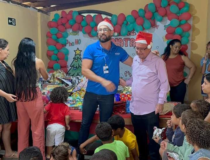 MANHUAÇU (MG) - A ação solidária “Doe Sorrisos – Natal Solidário”, realizada pelos alunos das Faculdades Doctum de Manhuaçu, promoveu a entrega de brinquedos para crianças do distrito de Vilanova nesta sexta-feira (19/12). A iniciativa contou com a parceria do vereador e ex-aluno da instituição, Gilson César, conhecido como Gilsinho, em parceria com o projeto social “Vencendo Gigantes”.