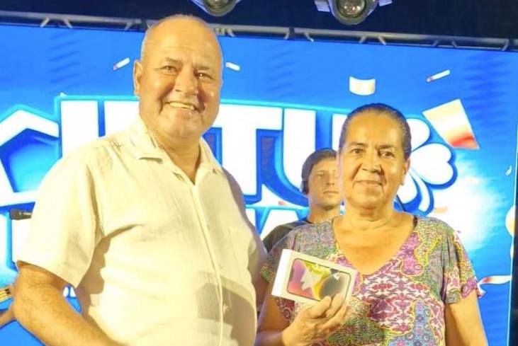 Maria Aparecida de Souza Silva, moradora da Rua Maria Castro Vaz, foi premiada com um iPhone 14.