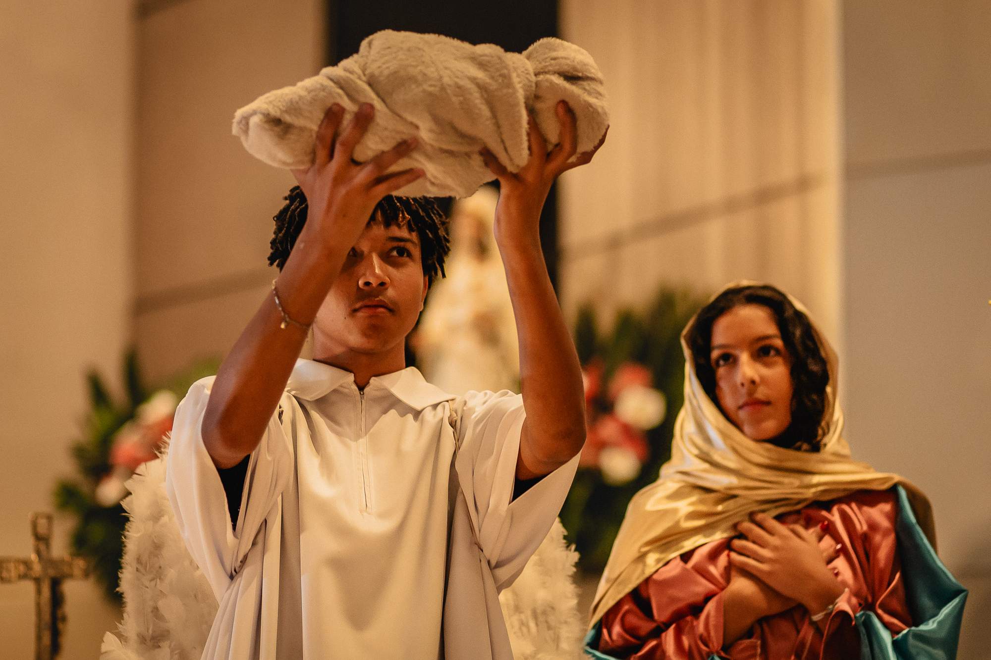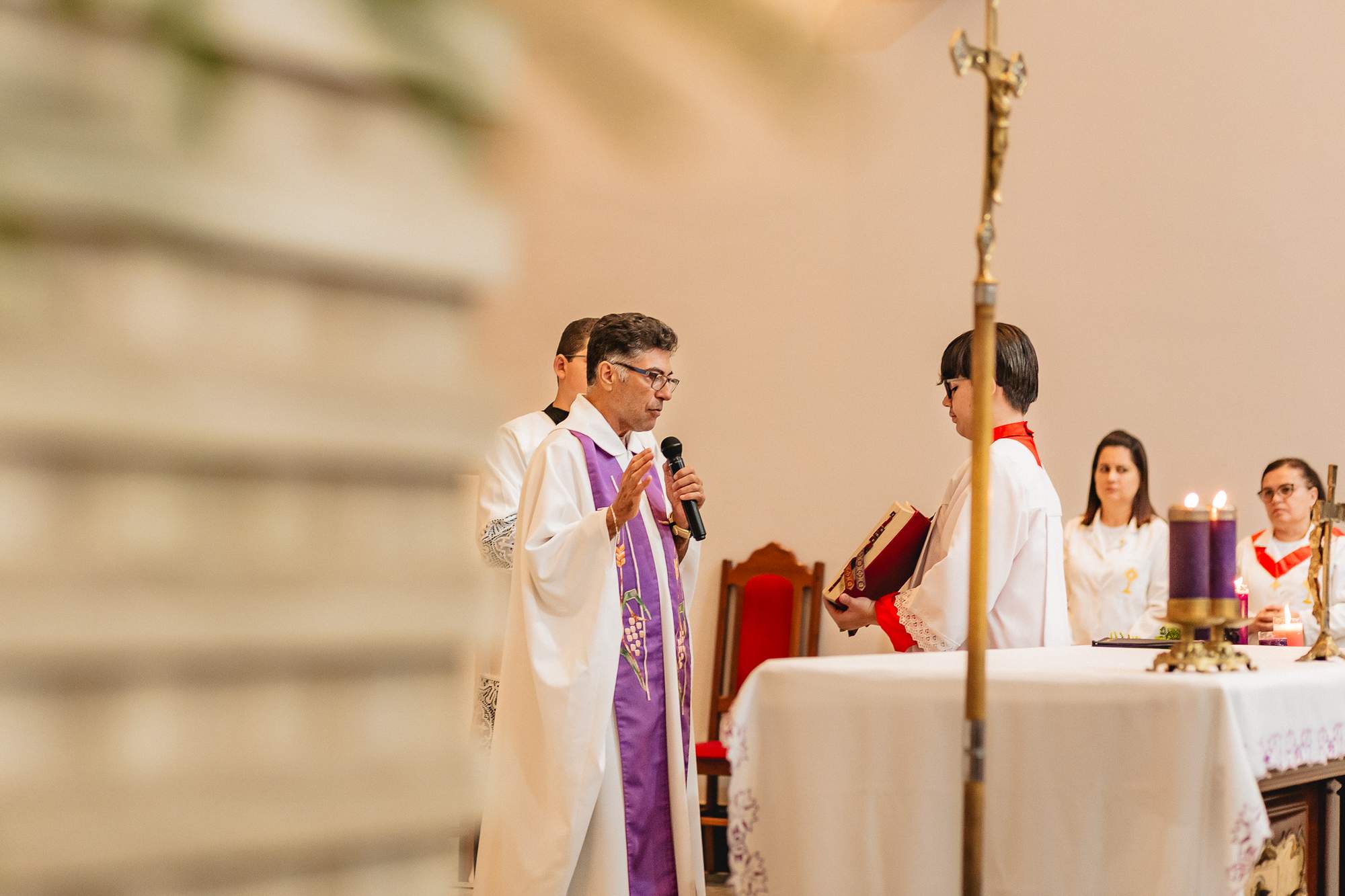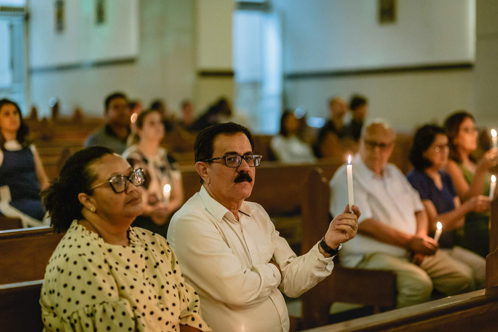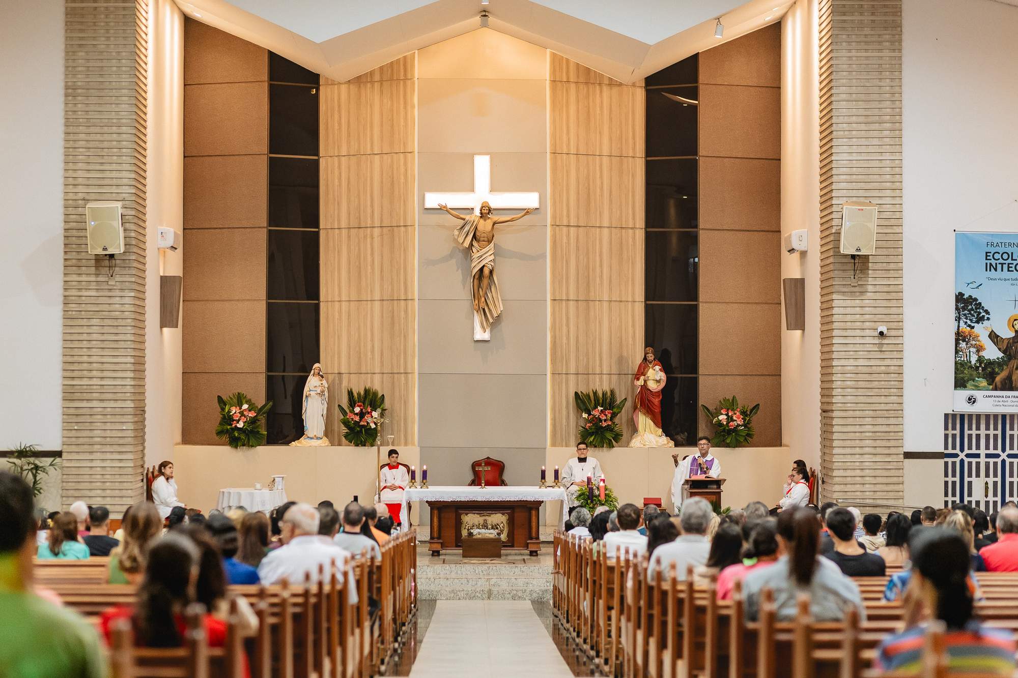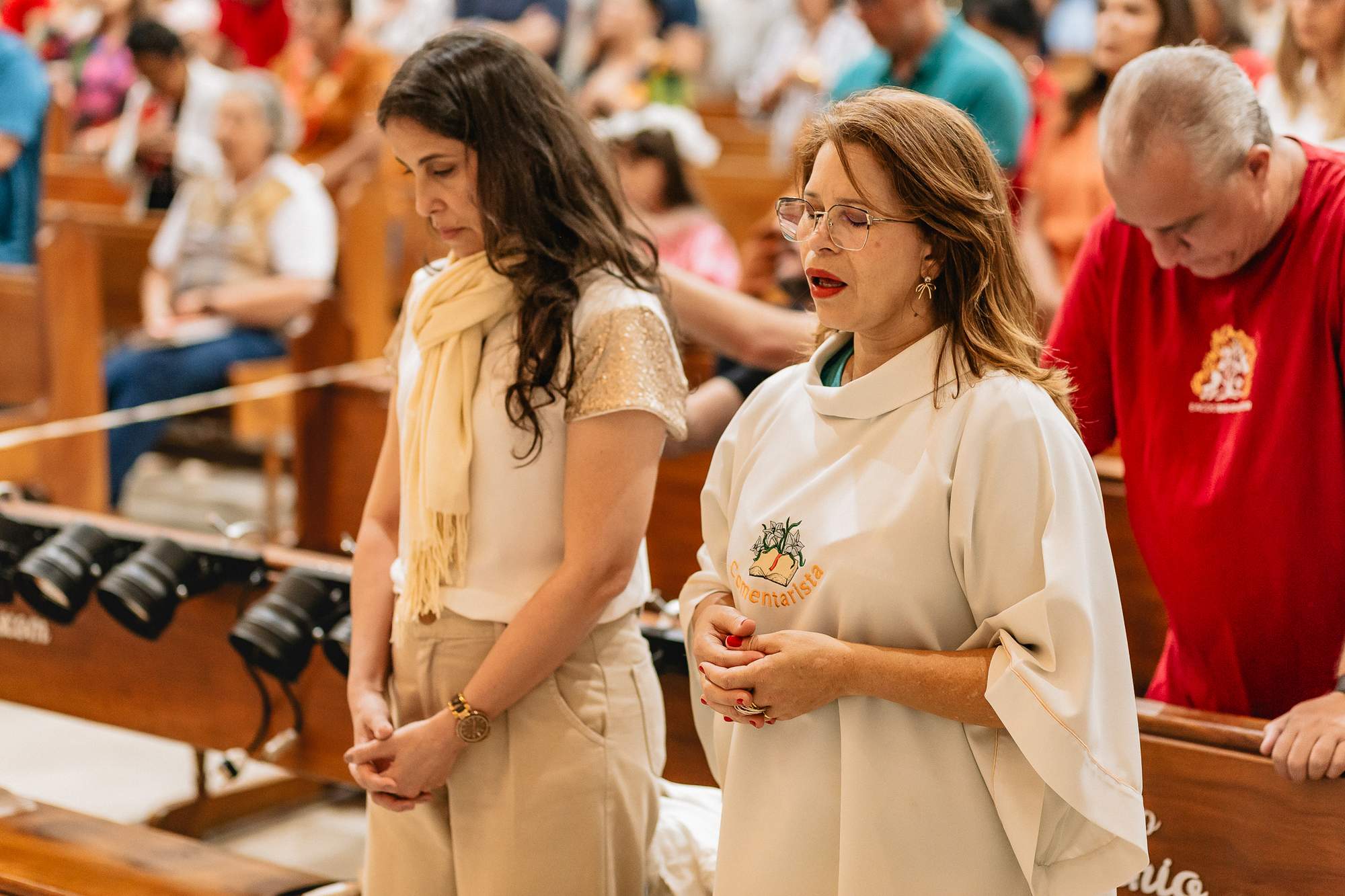 A noite de apresentação ocorreu após a celebração da Santa Missa, presidida pelo padre Rogério, e reuniu fiéis da comunidade em um ambiente solene e contemplativo.
