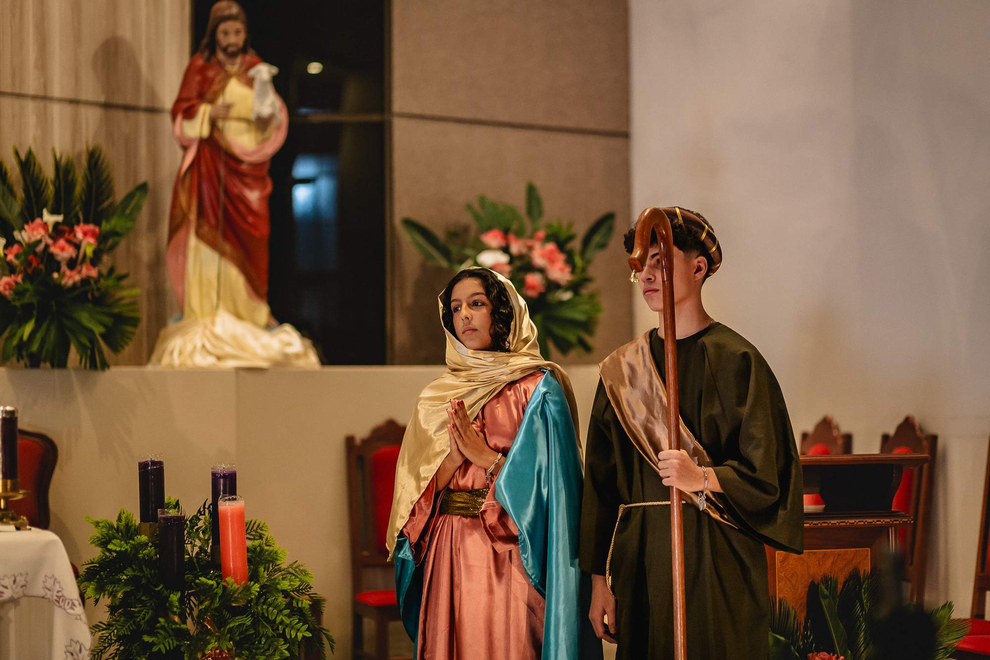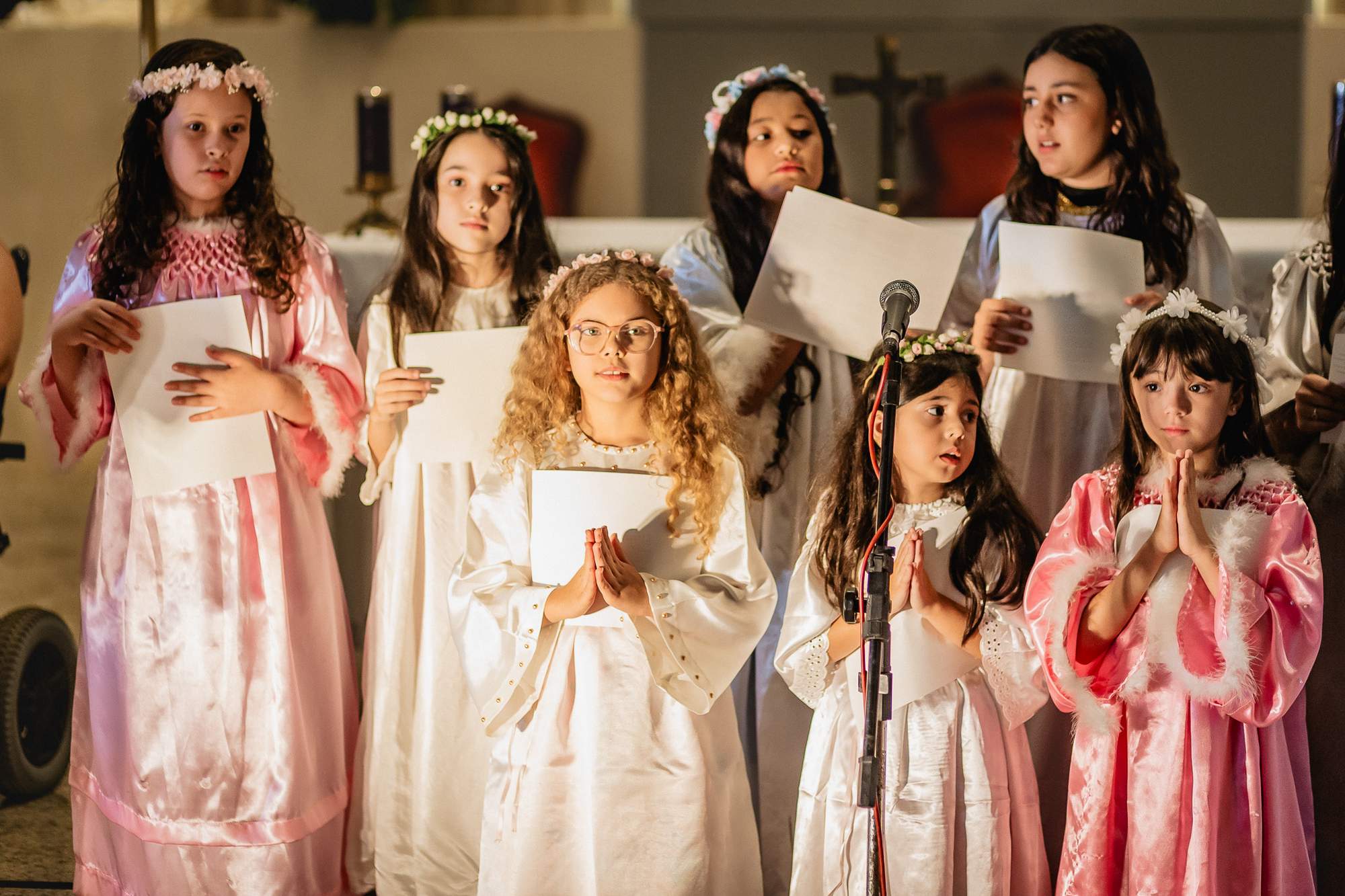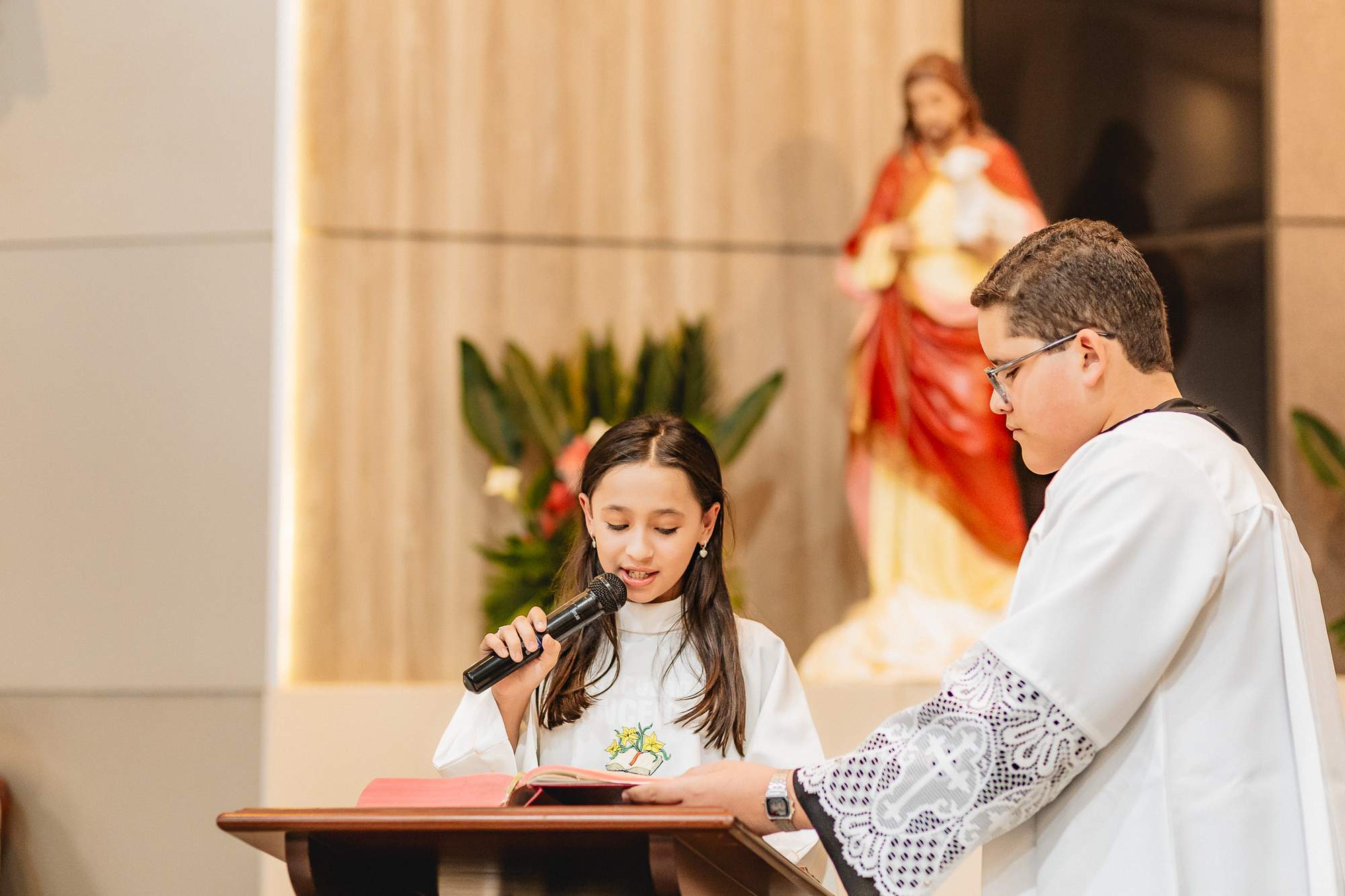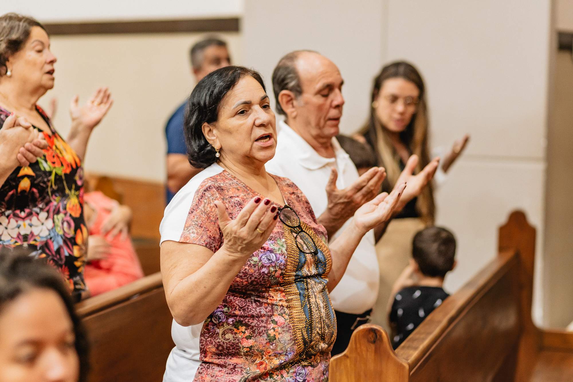 A noite de apresentação ocorreu após a celebração da Santa Missa, presidida pelo padre Rogério, e reuniu fiéis da comunidade em um ambiente solene e contemplativo.