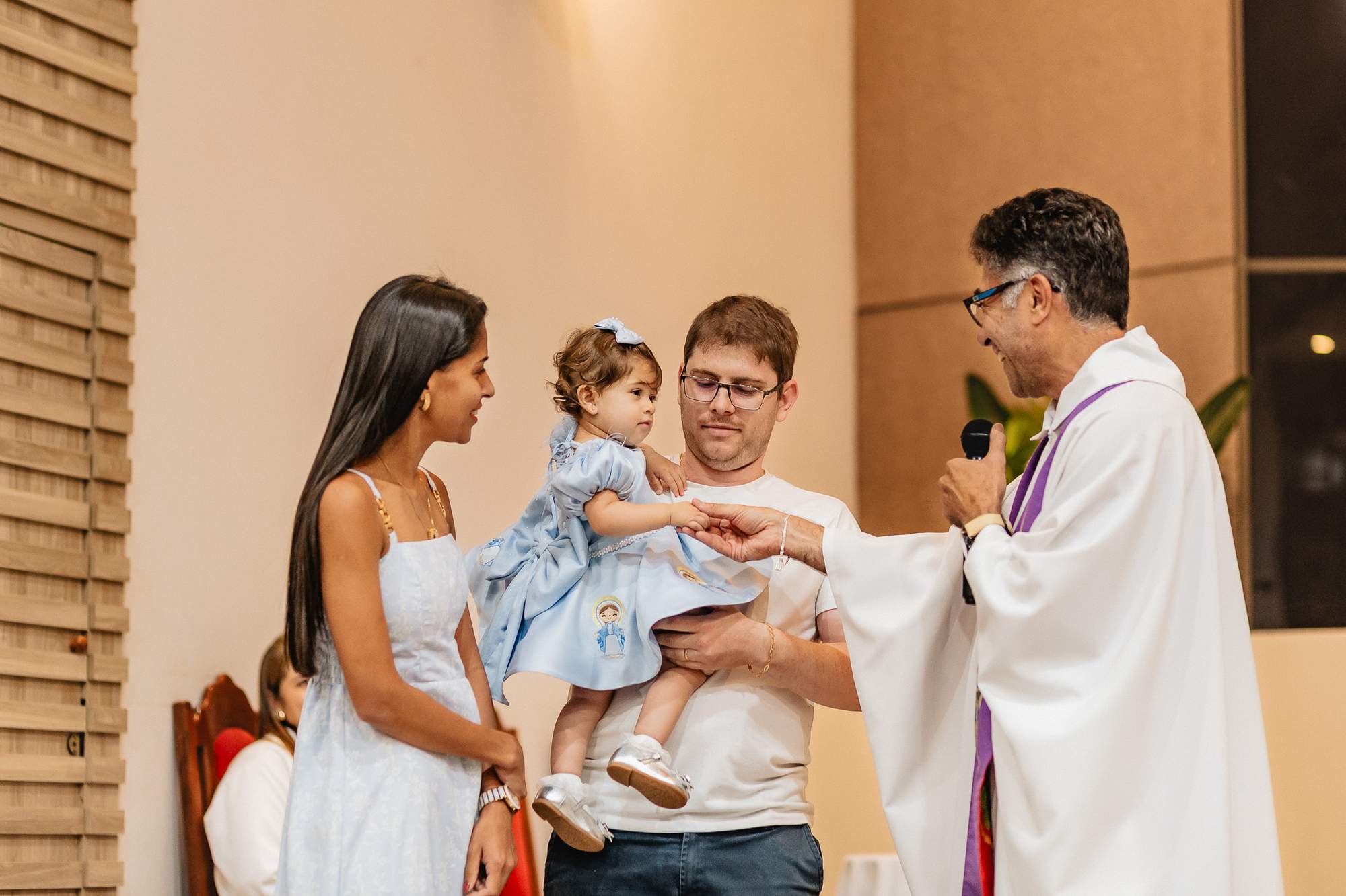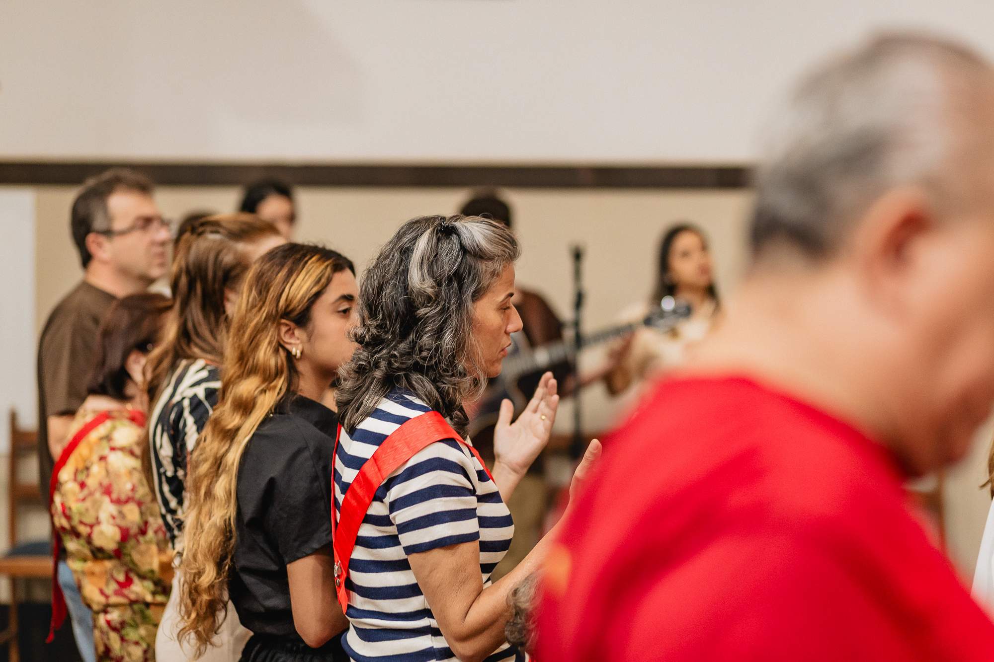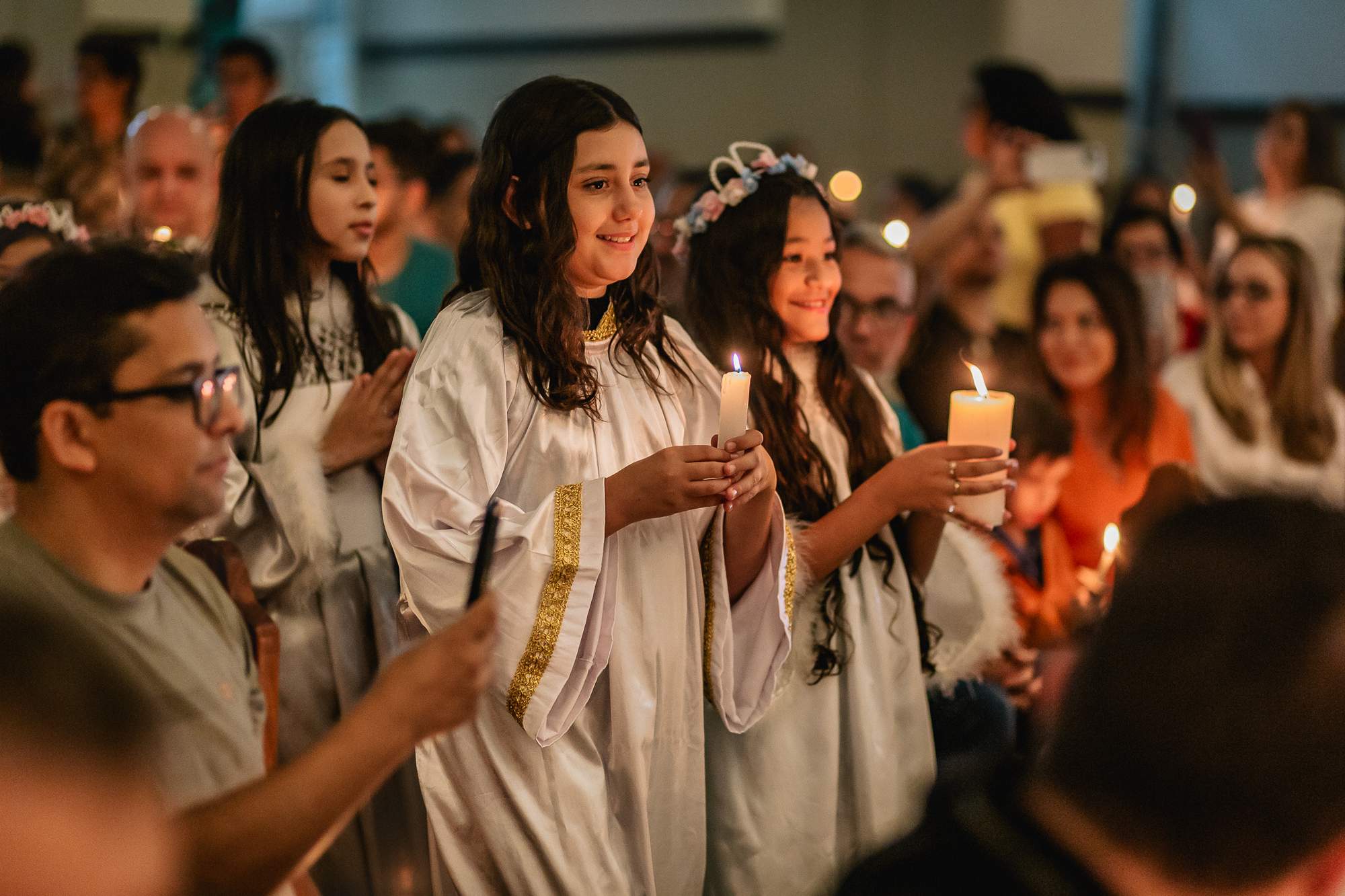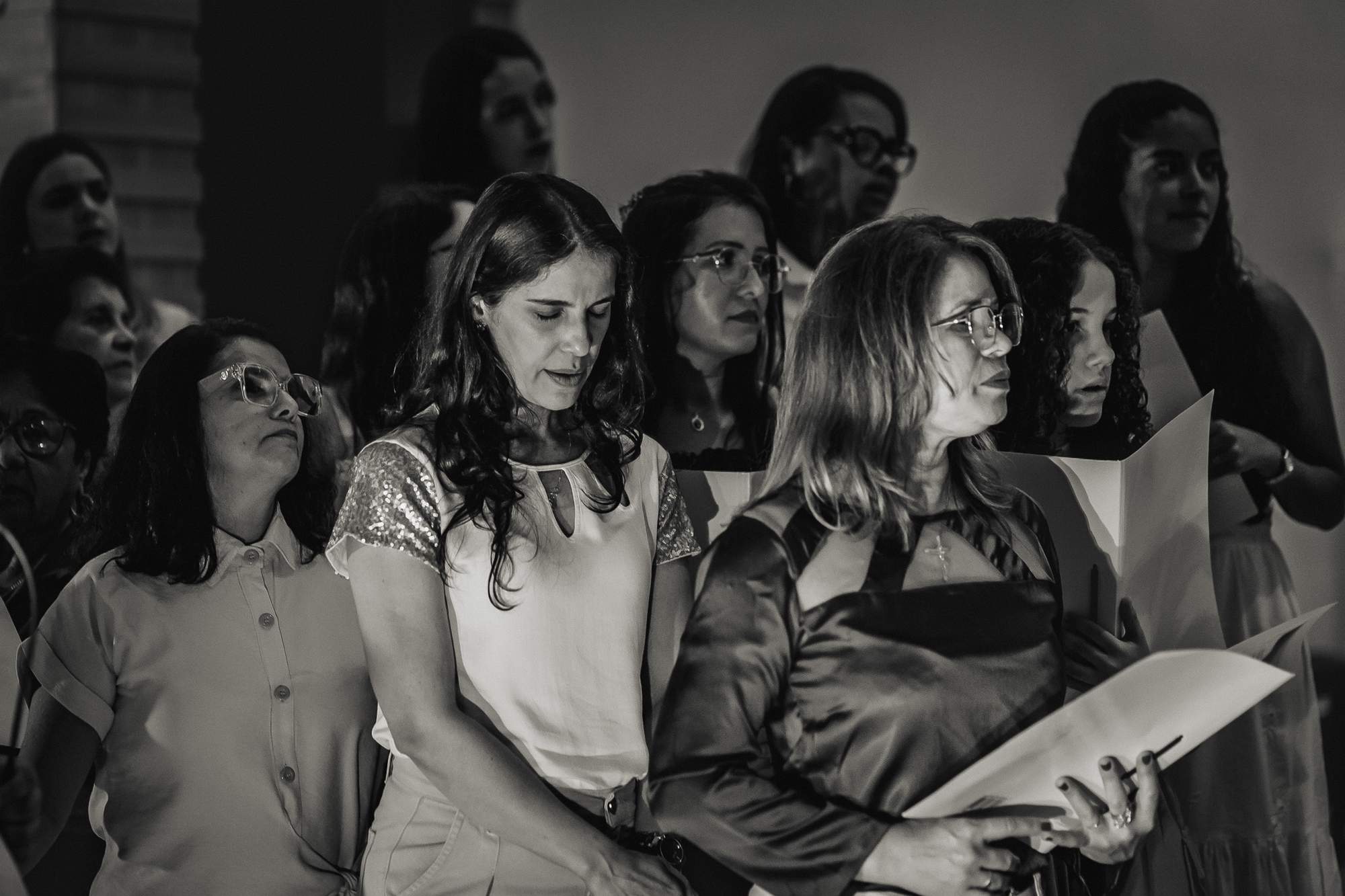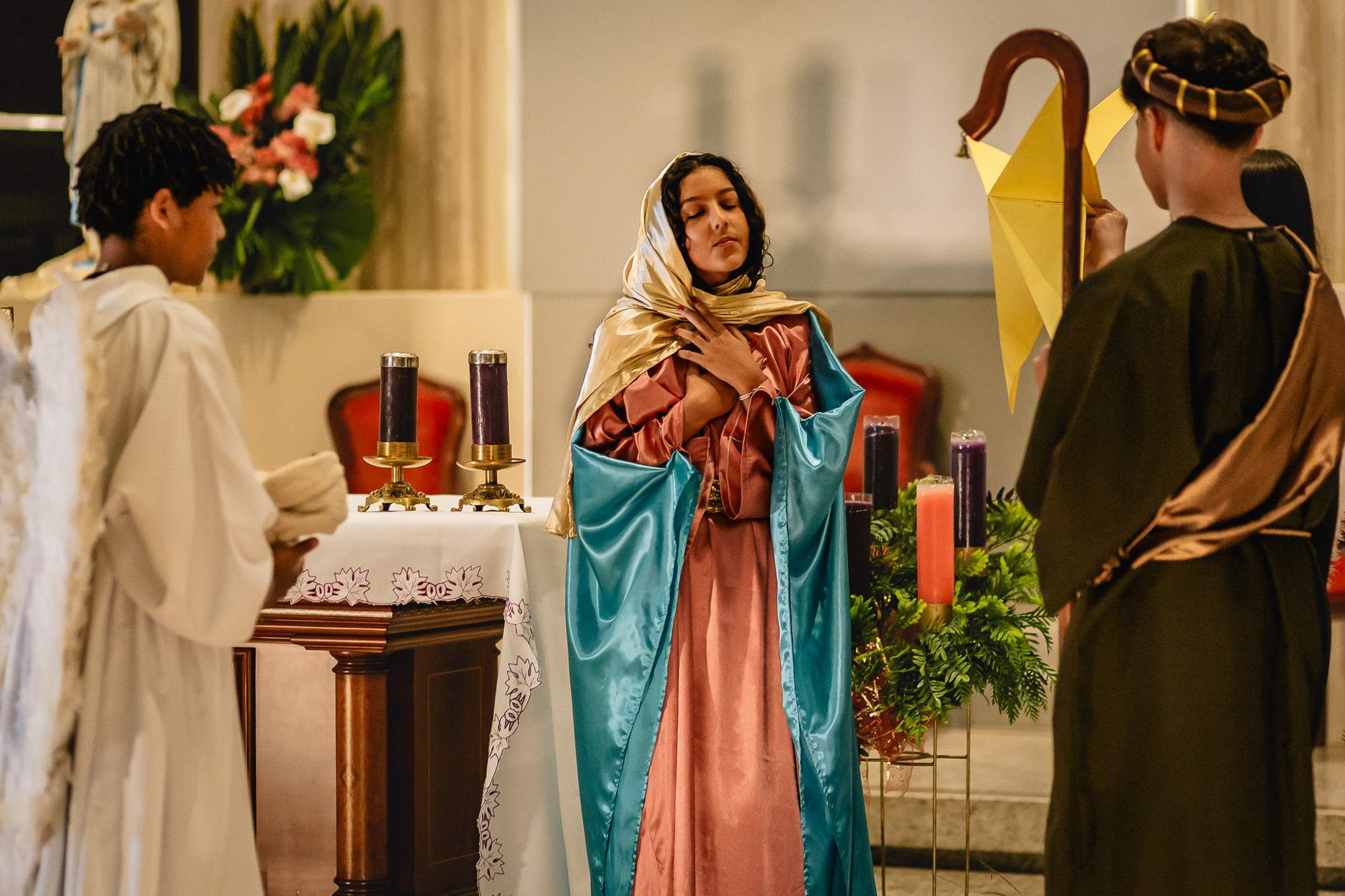 A noite de apresentação ocorreu após a celebração da Santa Missa, presidida pelo padre Rogério, e reuniu fiéis da comunidade em um ambiente solene e contemplativo.