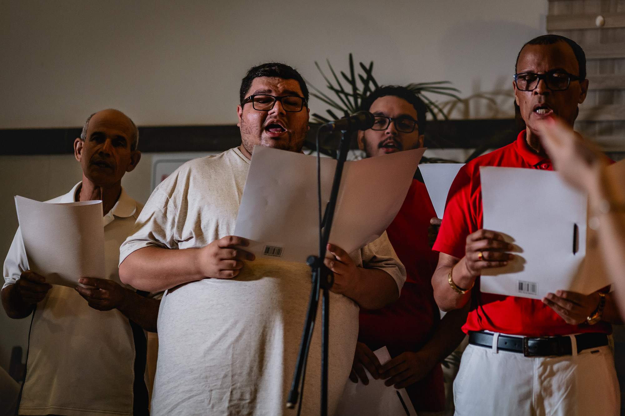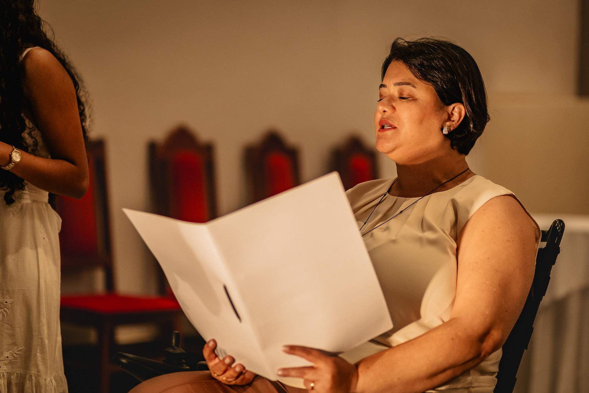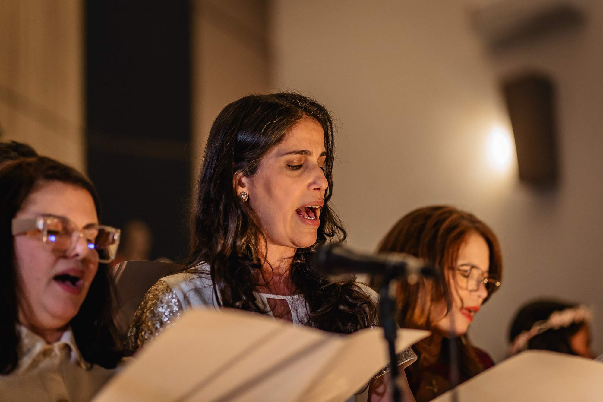 Com repertório natalino e religioso, a apresentação foi realizada dentro da igreja, em um ambiente acolhedor e familiar.