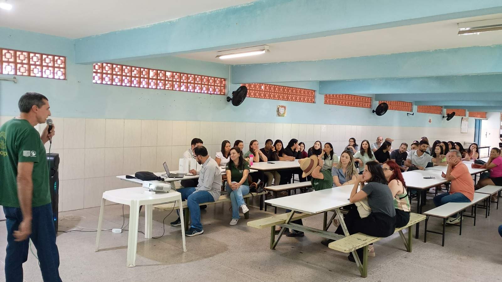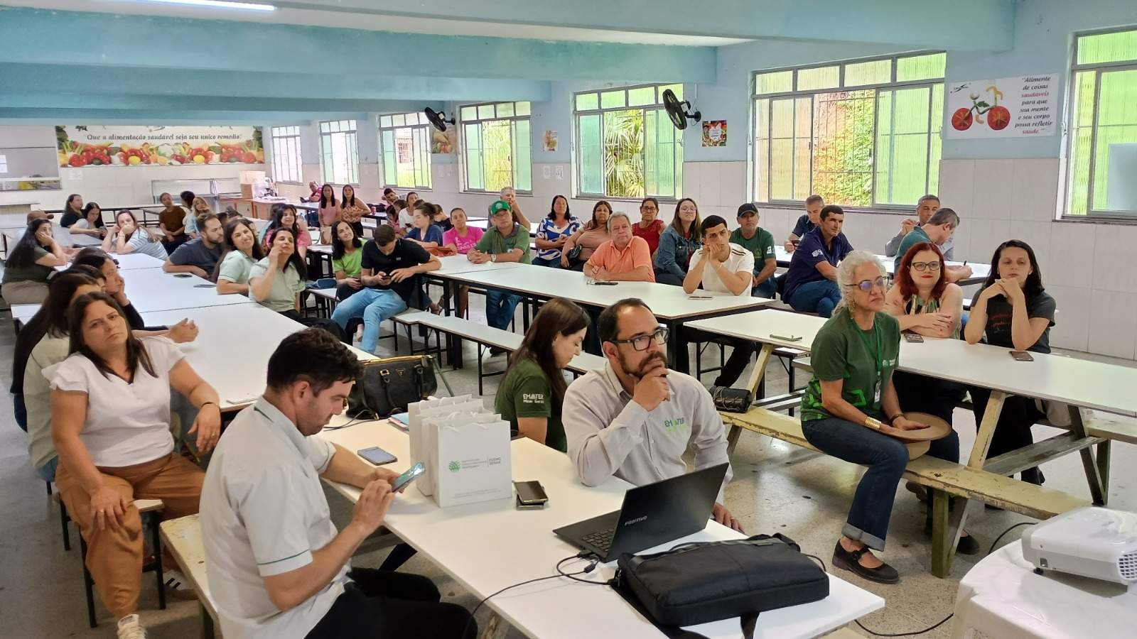 Organizado na Escola Estadual Maria de Lucca Pinto Coelho, o evento contou com a participação de representantes de instituições ligadas à agricultura familiar e à assistência técnica, além dos educadores, evidenciando as ações voltadas à produção e ao fornecimento de alimentos destinados à merenda escolar.