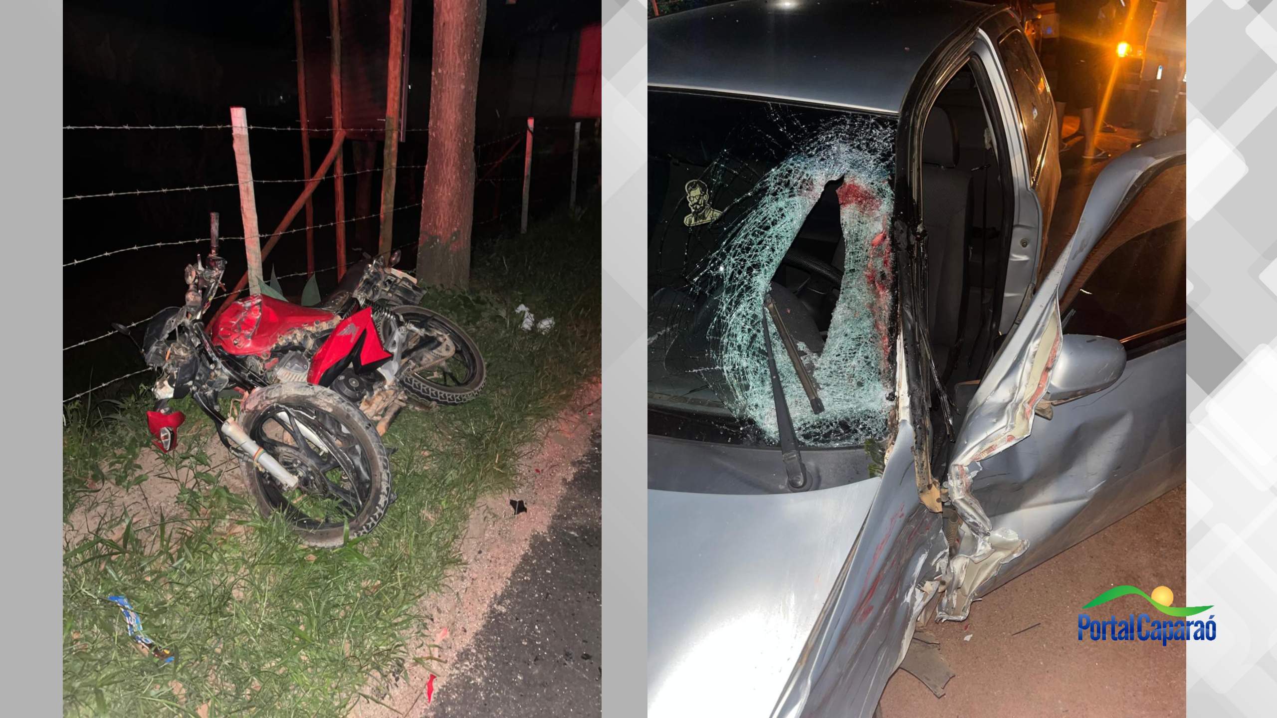 ALTO CAPARAÓ (MG) - Um grave acidente foi registrado na noite de quinta-feira (25/12) na rodovia AMG-2955, em Alto Caparaó. De acordo com a Polícia Militar Rodoviária, um motociclista de 22 anos ficou gravemente ferido após ser atingido por um carro que invadiu a contramão no km 10 da via, por volta das 20h30.