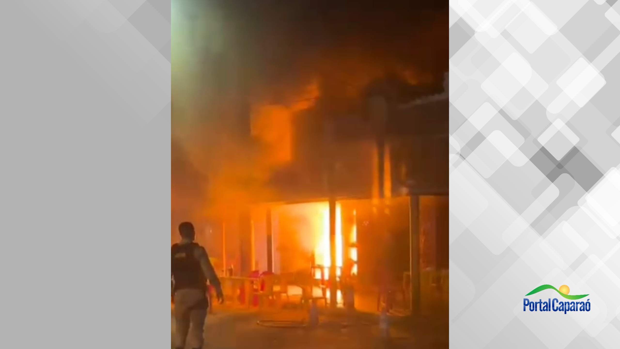 POCRANE (MG) - Um incêndio de grandes proporções destruiu dois estabelecimentos comerciais na Avenida Minas Gerais, no centro de Pocrane, na noite desta sexta-feira (26).