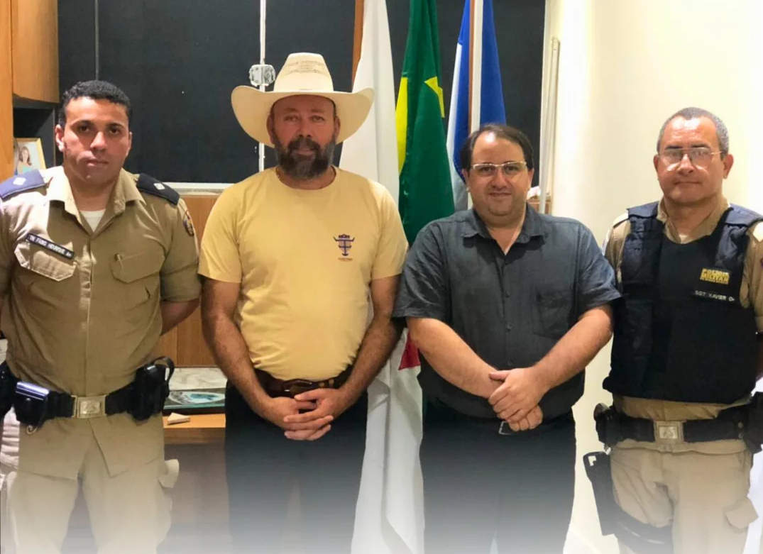 A reunião na sede do Poder Executivo contou com a presença do Comando da Polícia Militar em Divino, Tenente Fábio, e pelo Sargento Xavier, com o prefeito Jônia Leite e do vice-prefeito Elaino Gonçalves.