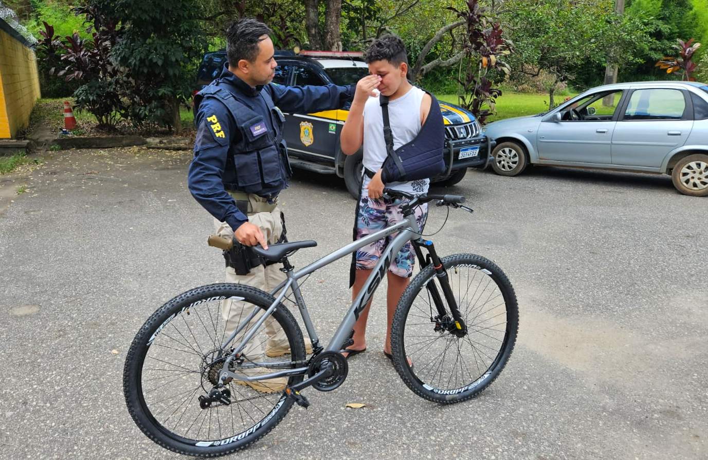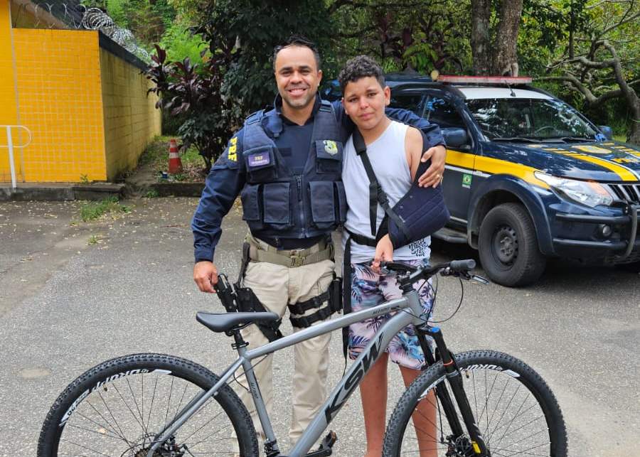 MANHUAÇU (MG) - Um gesto de solidariedade emocionou a todos nesta terça-feira (30), no posto da Polícia Rodoviária Federal (PRF) de Realeza. O policial rodoviário federal Weberts presenteou com uma bicicleta o adolescente Raphael, de 13 anos, que havia perdido o avô em um acidente de trânsito na BR-116, na véspera do Natal.