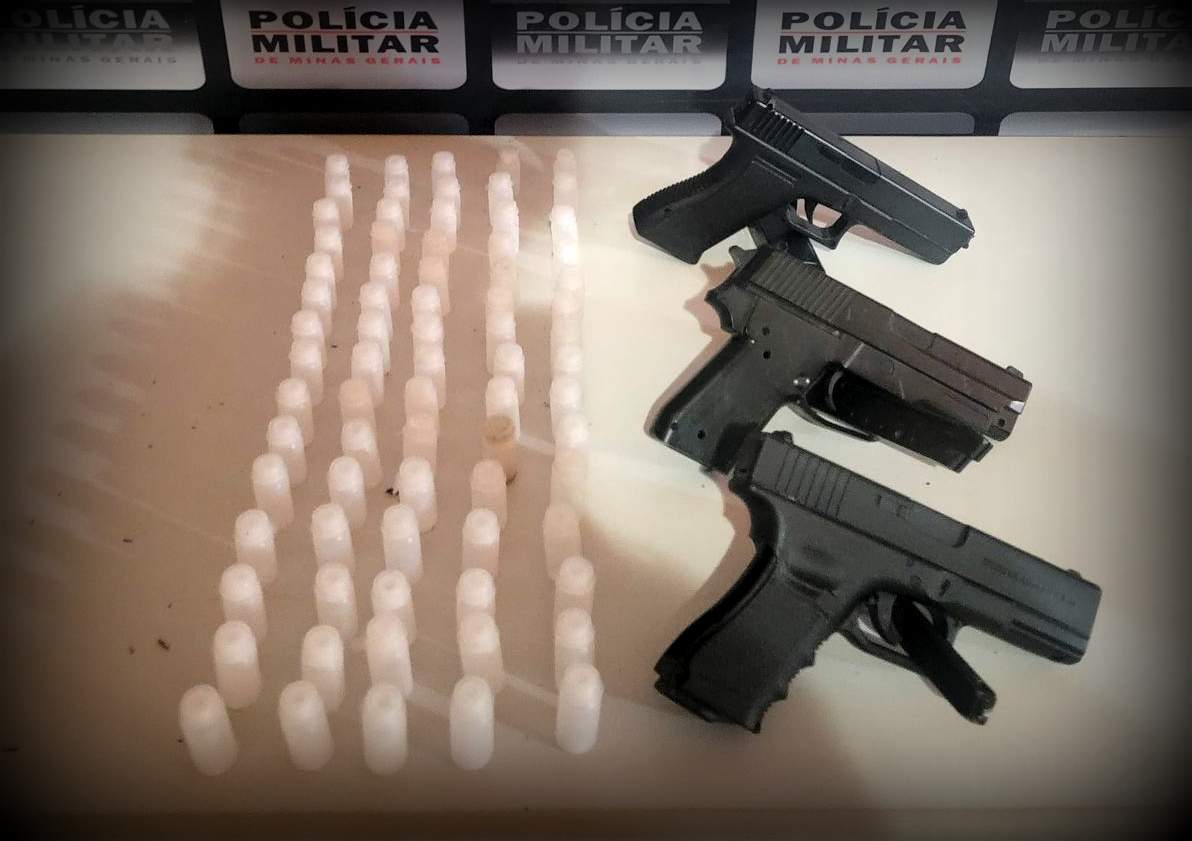 LAJINHA (MG) - A Polícia Militar de Minas Gerais apreendeu uma motocicleta e três réplicas de arma de fogo durante uma operação policial realizada na última quinta-feira (1º/1), na Rua Maria Constância, no bairro Santa Terezinha.