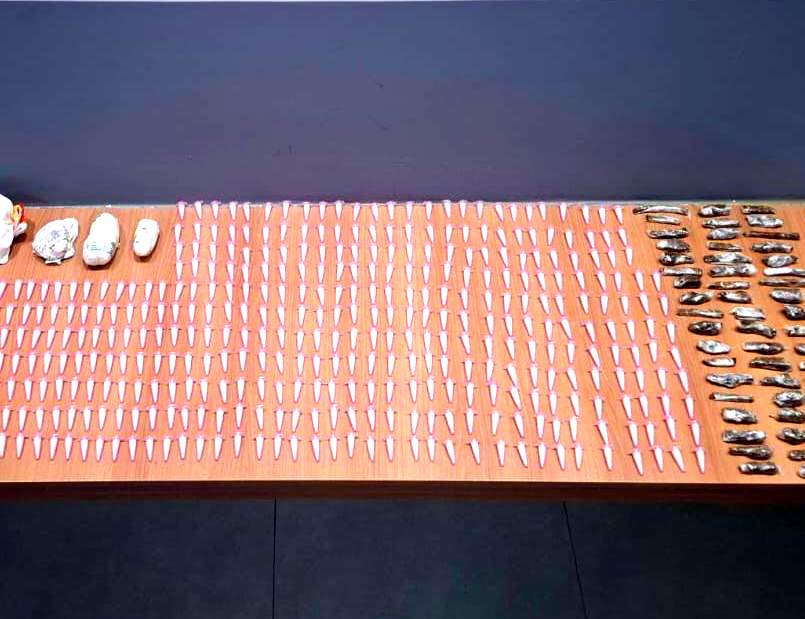 Durante as buscas, com apoio da equipe Rocca e do cão de faro Aquiles, foram localizados e apreendidos 481 pinos de cocaína, seis porções de cocaína, 54 porções de maconha, uma balança de precisão, um rolo de plástico filme e um cartão bancário.