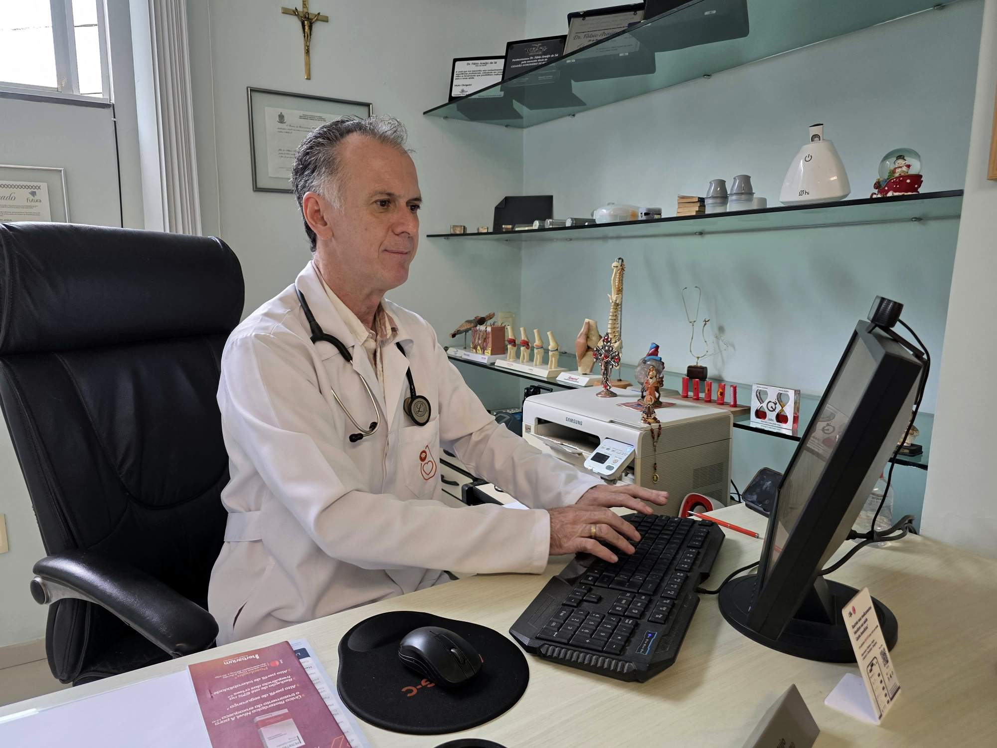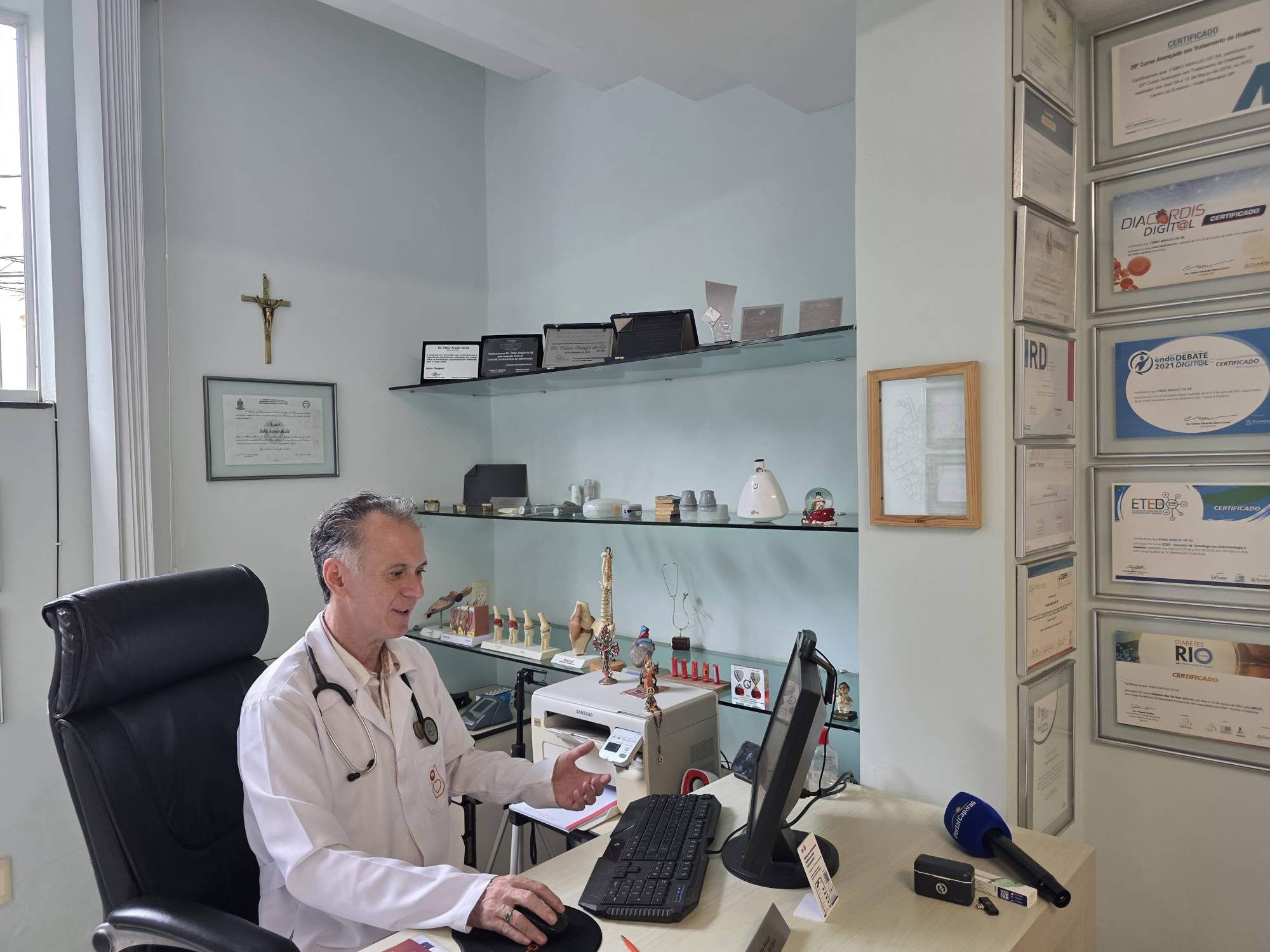 Com 30 anos dedicados à medicina, Dr. Fábio tem focado nos últimos 10 anos no atendimento a pessoas com diabetes. Ele destaca a importância desse cuidado diante do crescimento da doença em todo o mundo, incluindo a região de Manhuaçu. “A gente fica muito feliz, sempre falando, fazendo a medicina em nome de Deus e há 30 anos de muito estudo. Você acompanhou isso durante esse tempo também. Nós já fomos secretários de saúde aqui de Manhuaçu, já tivemos na chefia do pronto socorro e hoje estamos comemorando 30 anos de clínica médica. Nos últimos 10 anos, nós temos um foco muito especial a diabetologia, que é o diabetes. Por quê? Porque o diabetes está aumentando muito, não só a nível Brasil, do Mundo e também em nossa cidade de Manhuaçu. Mas quero deixar claro que nós somos clínicos geral, então como clínico geral, não trabalhamos só com diabetes, óbvio, atuamos em diversas áreas da medicina interna”, explicou.