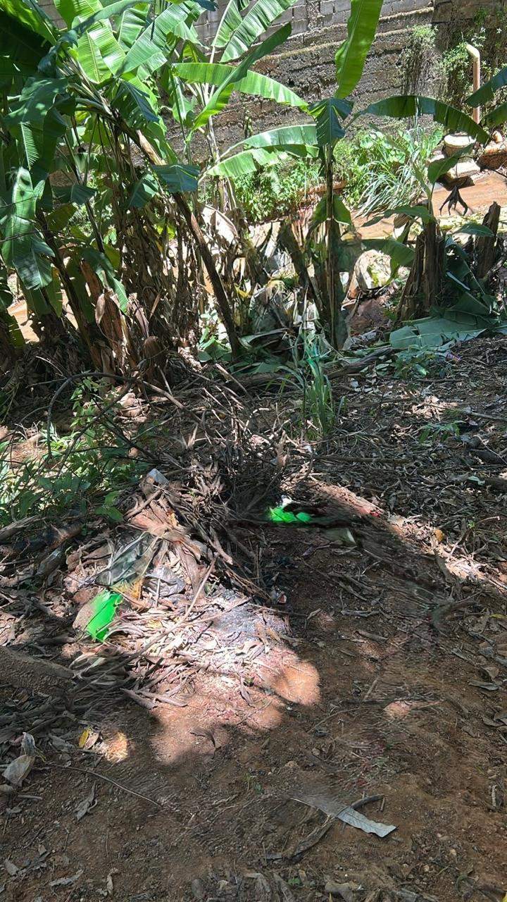 De acordo com informações da Polícia, o corpo da vítima, que tinha dois cortes na cabeça, foi encontrado em uma área de mata, embaixo de folhas de bananeira. Um facão foi encontrado na roupa dela.