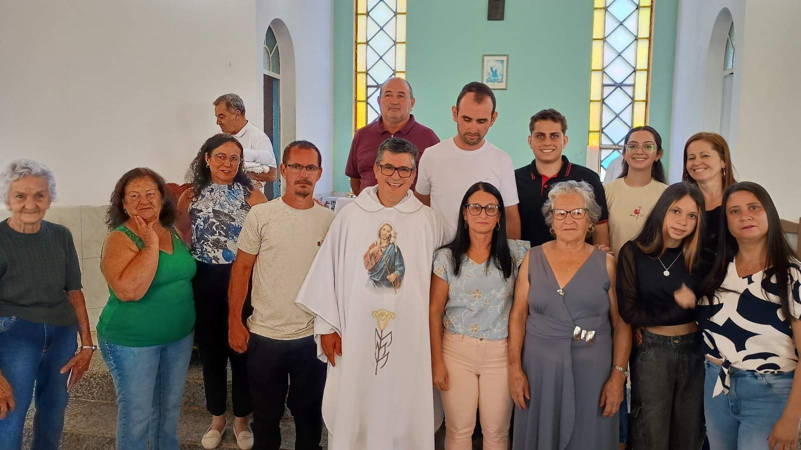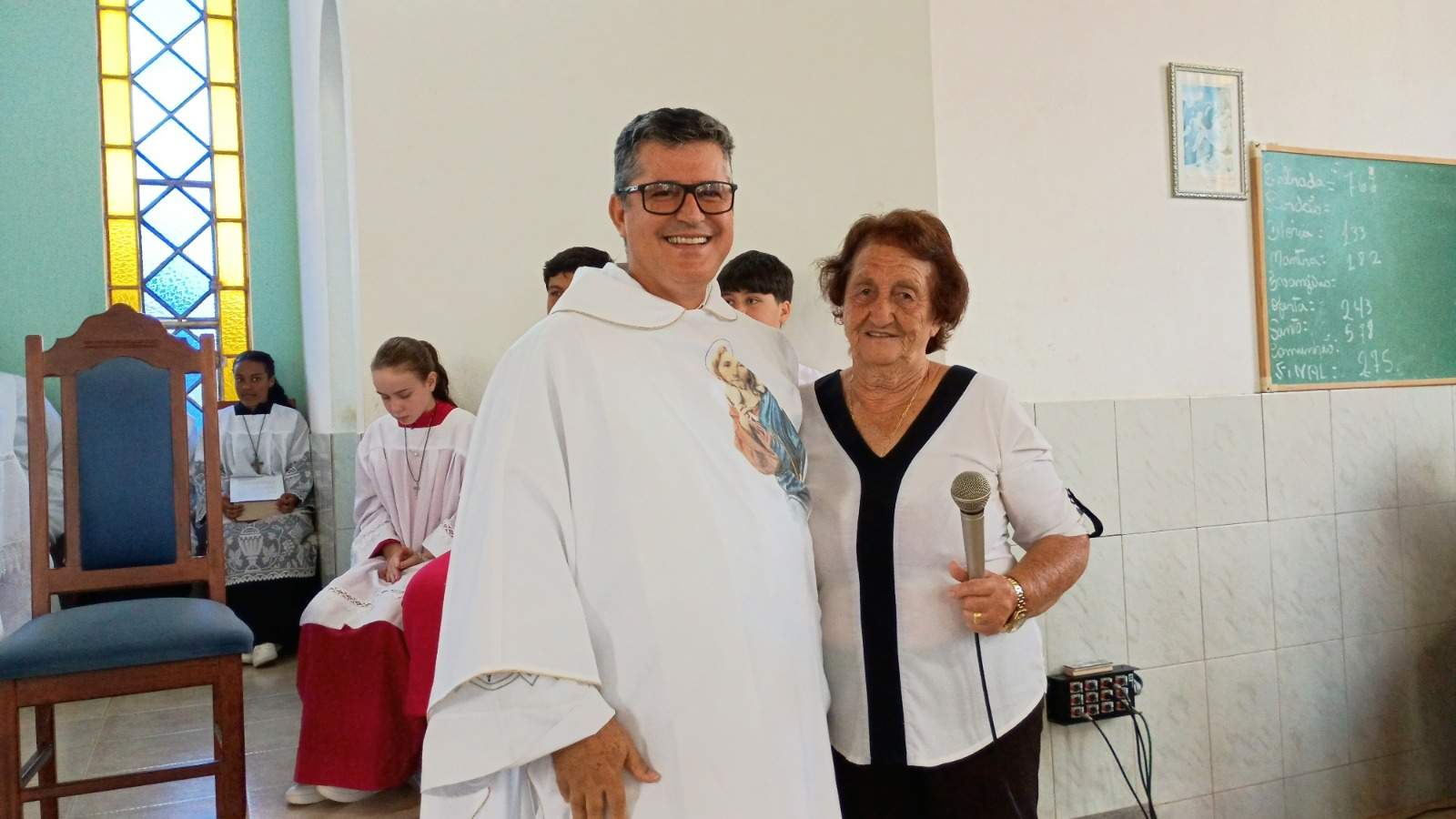À noite, Padre Márcio celebrou Missa na Igreja Matriz São Luiz Gonzaga, em Luisburgo. ‘É uma alegria muito grande para mim, como filho dessa terra, estar aqui hoje presidindo a celebração, acompanhado de alguns padres e amigos que vieram em solidariedade e comunhão comigo celebrar. Também muitos parentes, tios, tias, professores, colegas de infância, de estudo e familiares e pessoas da comunidade que se fizeram presentes aqui. Realmente, uma celebração muito bonita e muita emoção que fortalece a gente na caminhada de consagração religiosa’, elogiou e agradeceu Pe. Márcio.