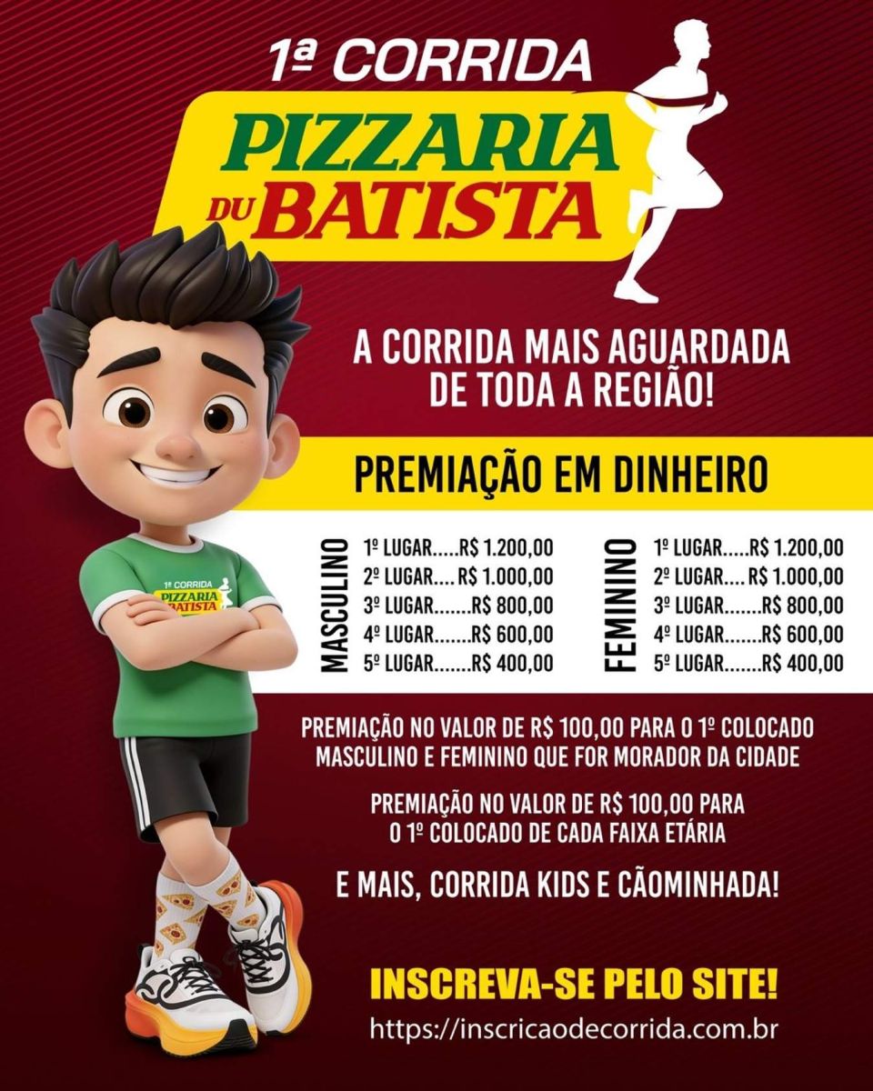 As inscrições para a corrida oficial já estão abertas e podem ser feitas pelo site https://inscricaodecorrida.com.br. A expectativa é de grande participação do público local e de corredores de outras cidades da região.