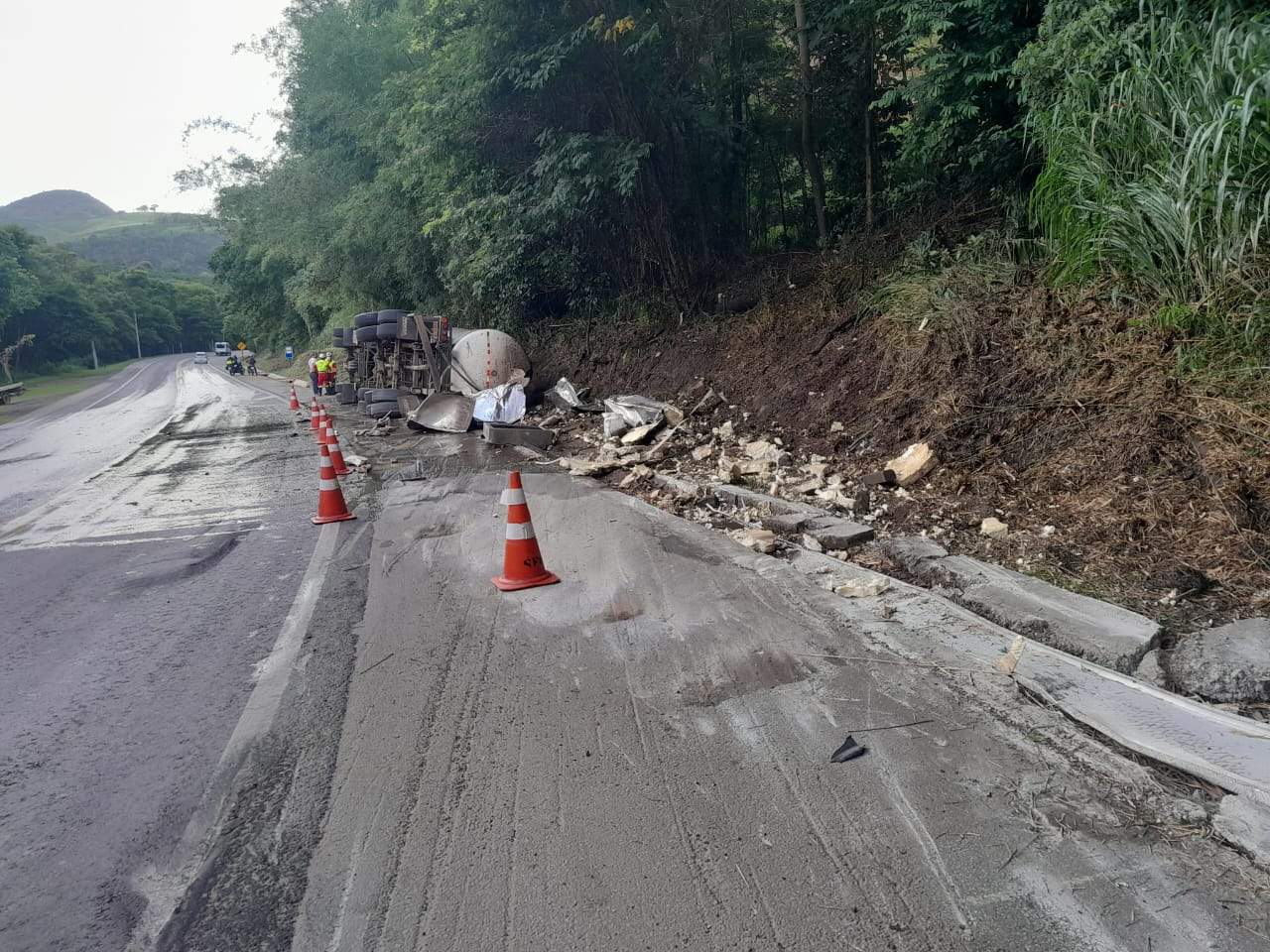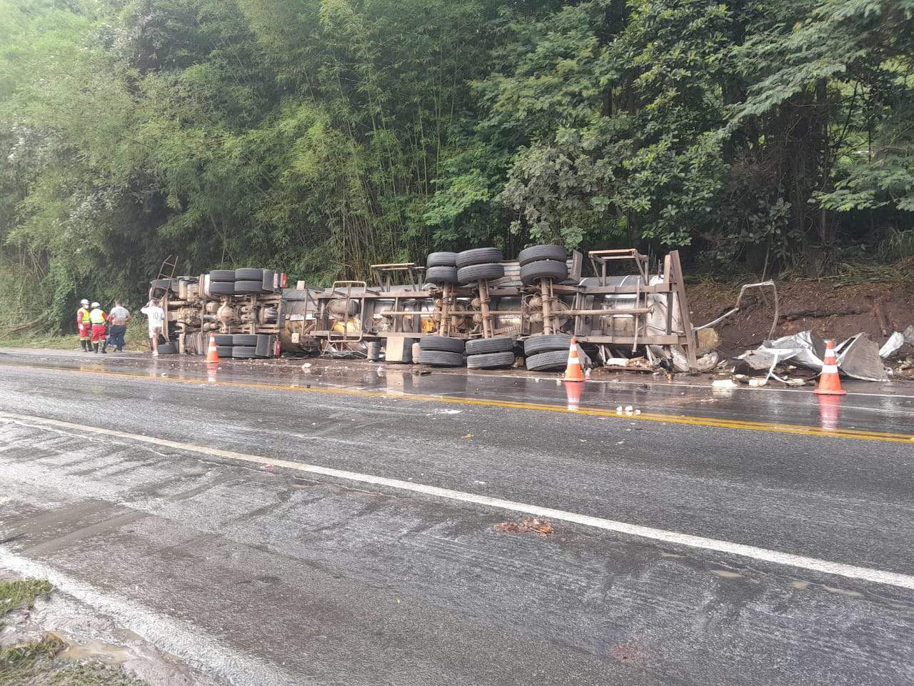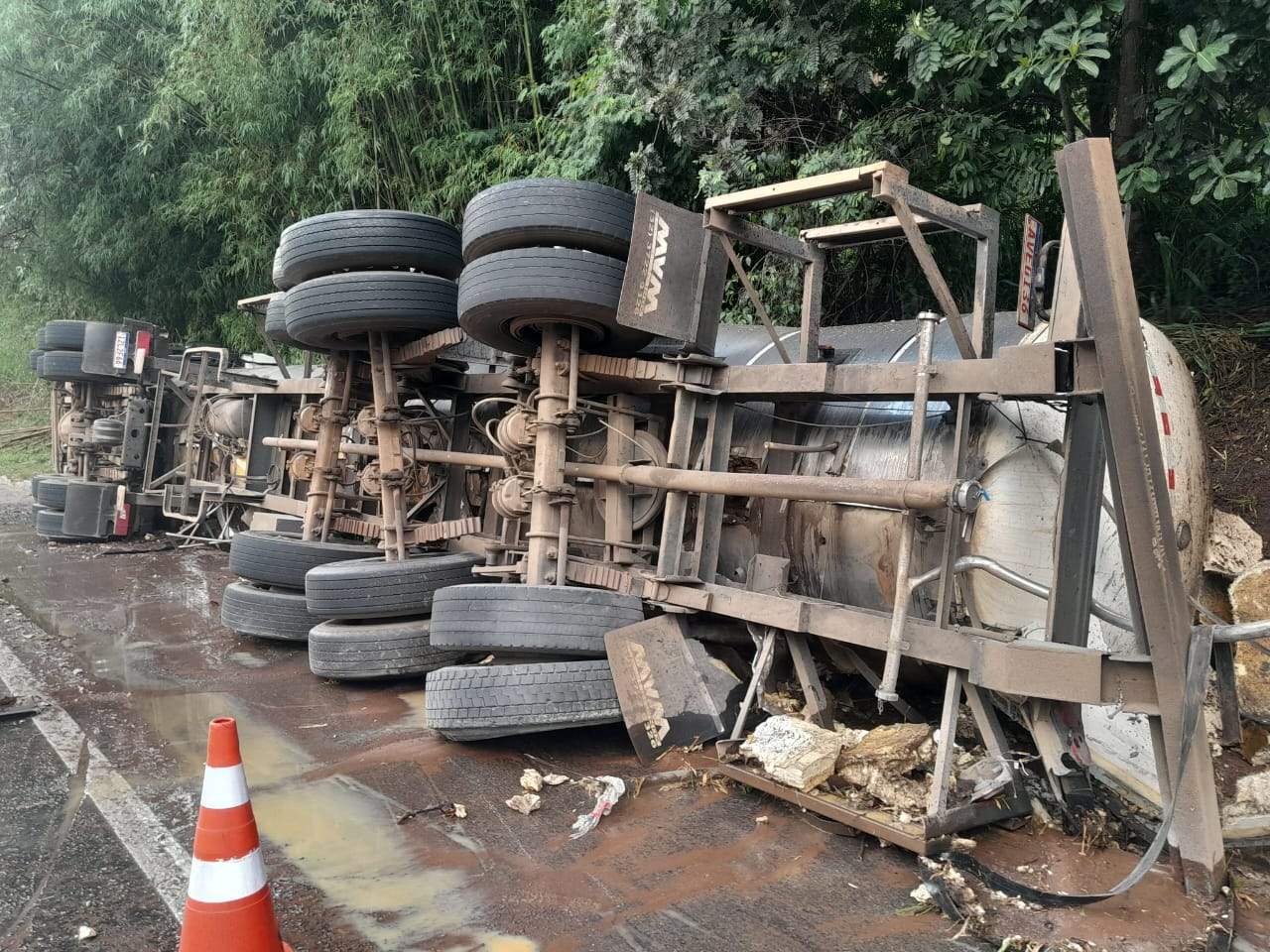 A carreta transportava uma carga líquida de soro de leite, que permaneceu no local até o transbordo. As causas do acidente ainda não foram oficialmente divulgadas, mas não houve registro de interdição prolongada da rodovia.
