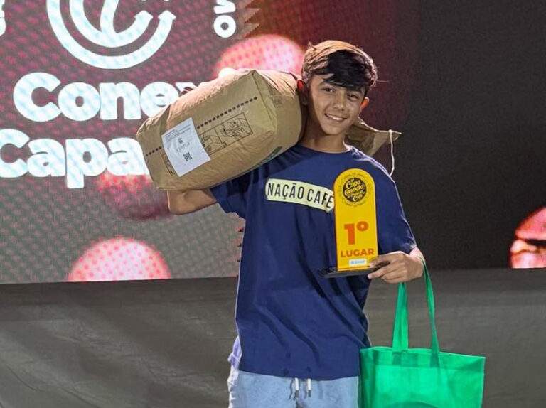 PEDRA MENINA (ES) – O talento e a renovação da cafeicultura do Caparaó ganharam destaque durante o 8º Conexão Caparaó, realizado nos dias 16 e 17 de janeiro em Pedra Menina, distrito de Dores do Rio Preto (ES). O grande vencedor da 2ª Copa Conexão de Preparo de Café foi Salomão Carmelito, de apenas 13 anos, da Fazenda Carmelito em Santa Margarida, que emocionou o público com sua performance e habilidade no preparo de cafés especiais.