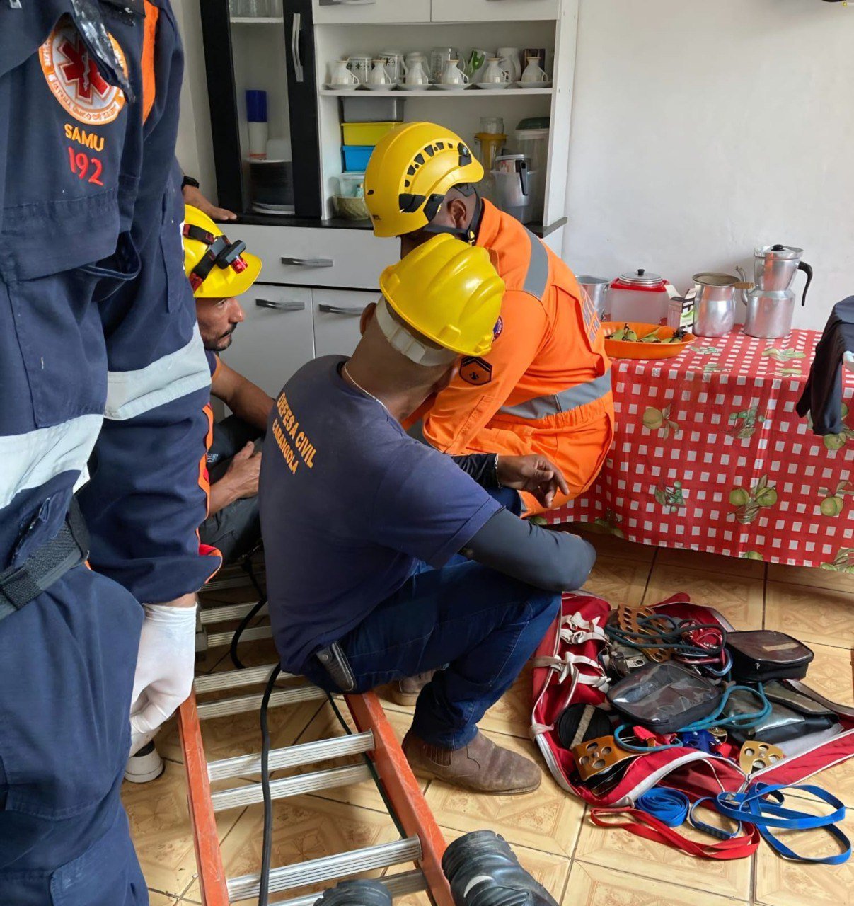 A vítima, uma mulher de 70 anos, sofreu uma queda de aproximadamente 2,5 metros após o colapso do piso da cozinha de sua residência. No momento do acidente, a vítima encontrava-se sozinha no imóvel, sendo localizada instantes depois por um vizinho, que estranhou a ausência de resposta ao chegar para almoçar em sua residência.