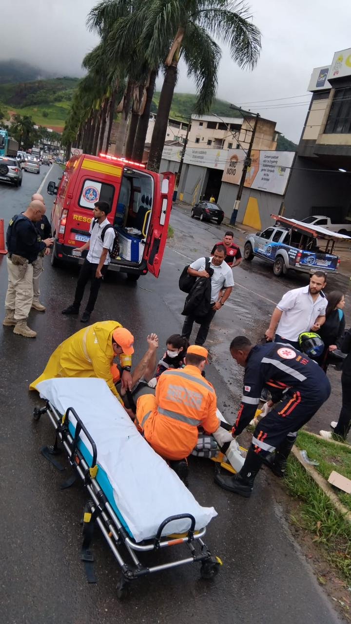 MANHUAÇU (MG) - Na tarde desta quinta-feira (22), as equipes do Corpo de Bombeiros de Manhuaçu foram acionadas para atendimento a um acidente envolvendo uma motocicleta e um automóvel no na BR-262, próximo à Ponte da Aldeia, em Manhuaçu.