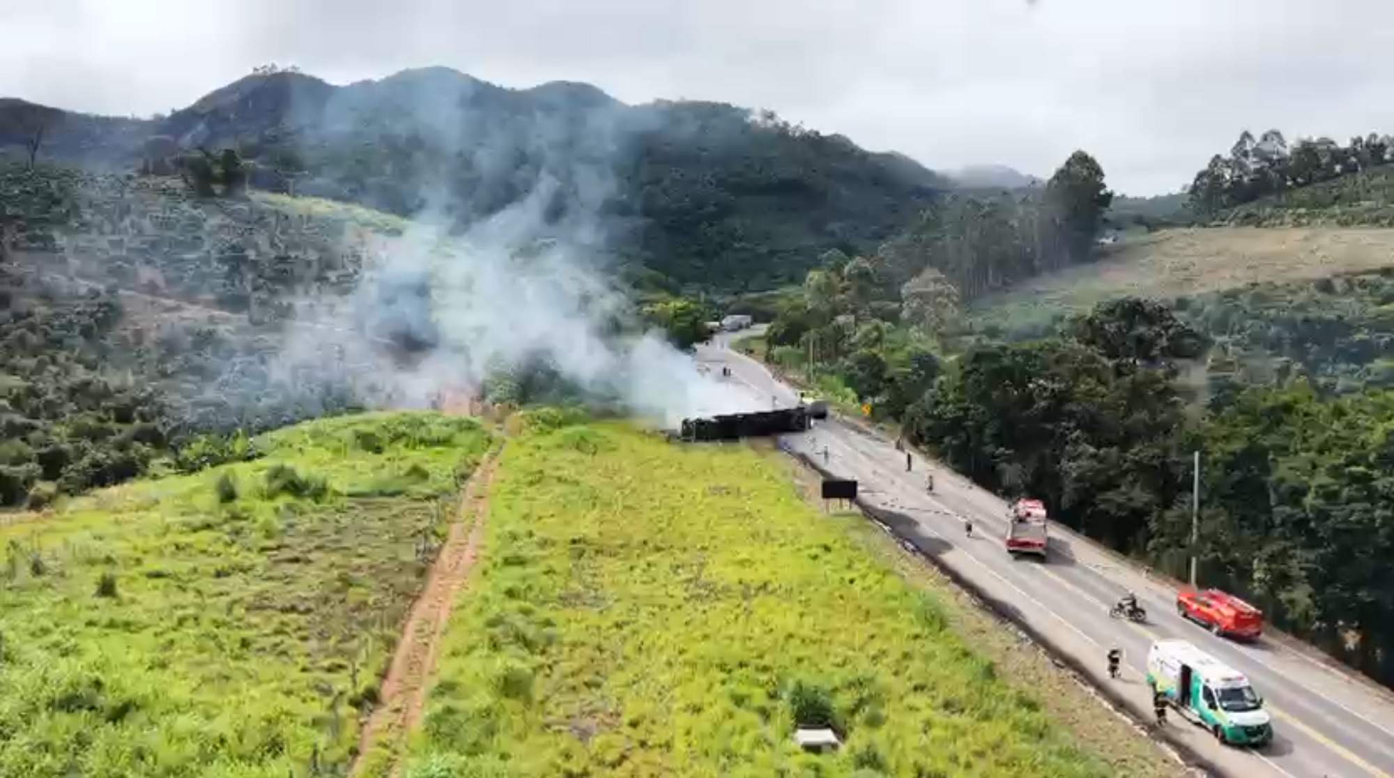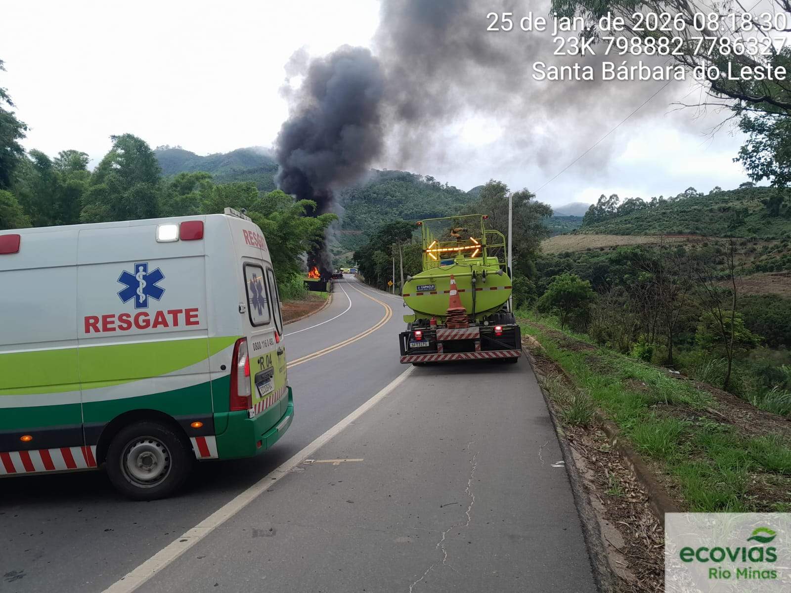 As equipes da Ecovias Rio Minas também auxiliaram no combate às chamas, prestando apoio aos bombeiros durante toda a operação.
