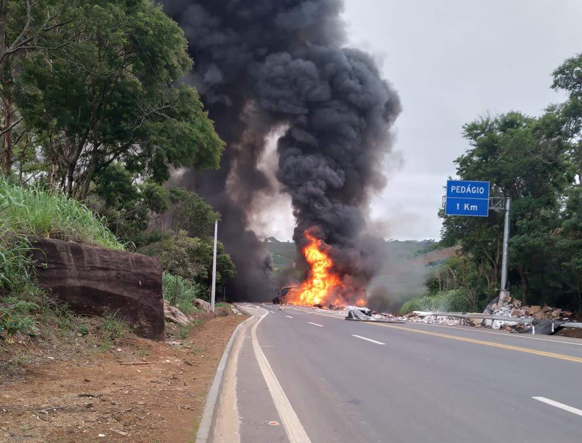 Apesar da gravidade do acidente, o motorista conseguiu sair da cabine ileso, antes que o fogo se alastrasse.