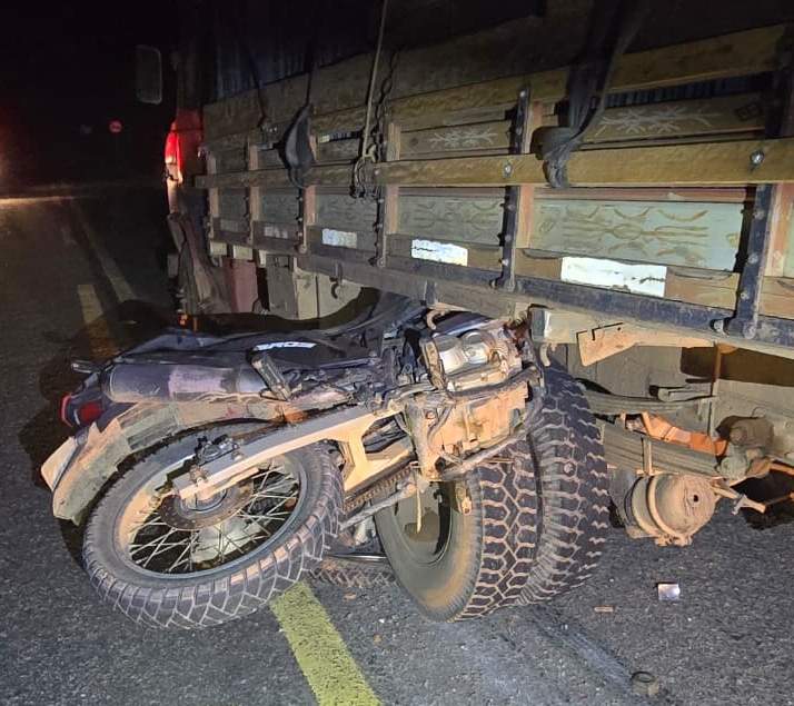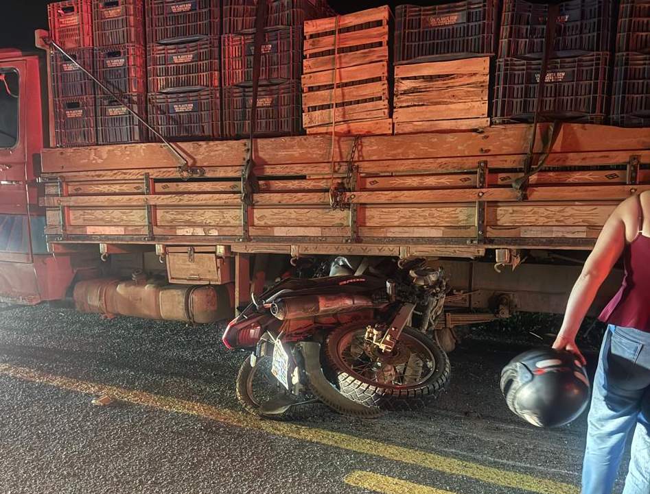 De acordo com a Polícia Militar Rodoviária, os dois veículos seguiam no mesmo sentido, de Lajinha para Mutum, quando o condutor da moto bateu na traseira do caminhão, carregado com caixotes. O impacto foi tão forte que a moto ficou presa entre a roda e a carroceria.
