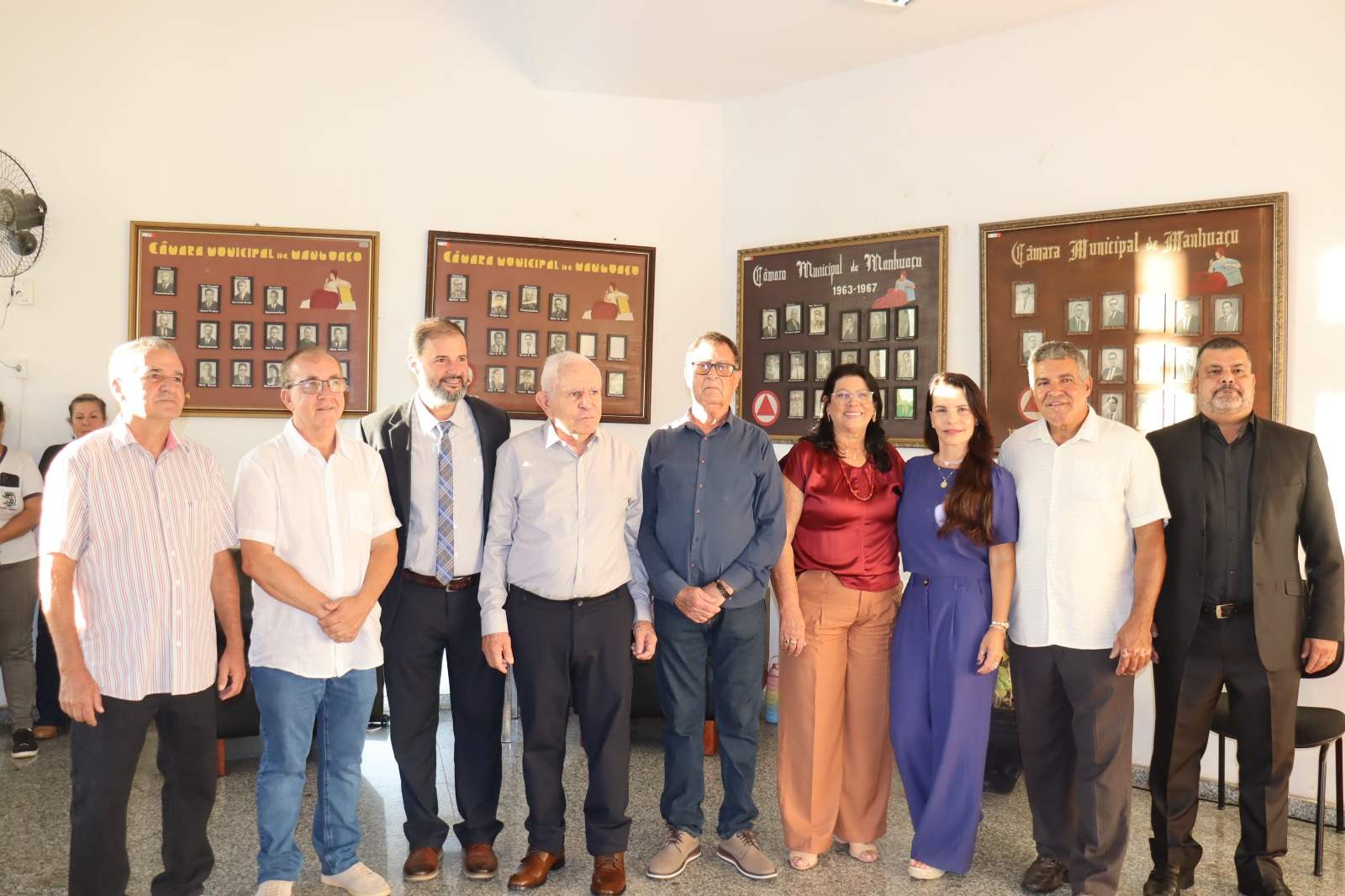 No início da solenidade, o mestre de cerimônia Thomaz Jr. chamou a presidente da câmara, Rose Mary, a prefeita de Manhuaçu, Maria Imaculada, e todos os vereadores para frente do painel da galeria. O pastor Sérgio Veiga fez a oração de início do evento.