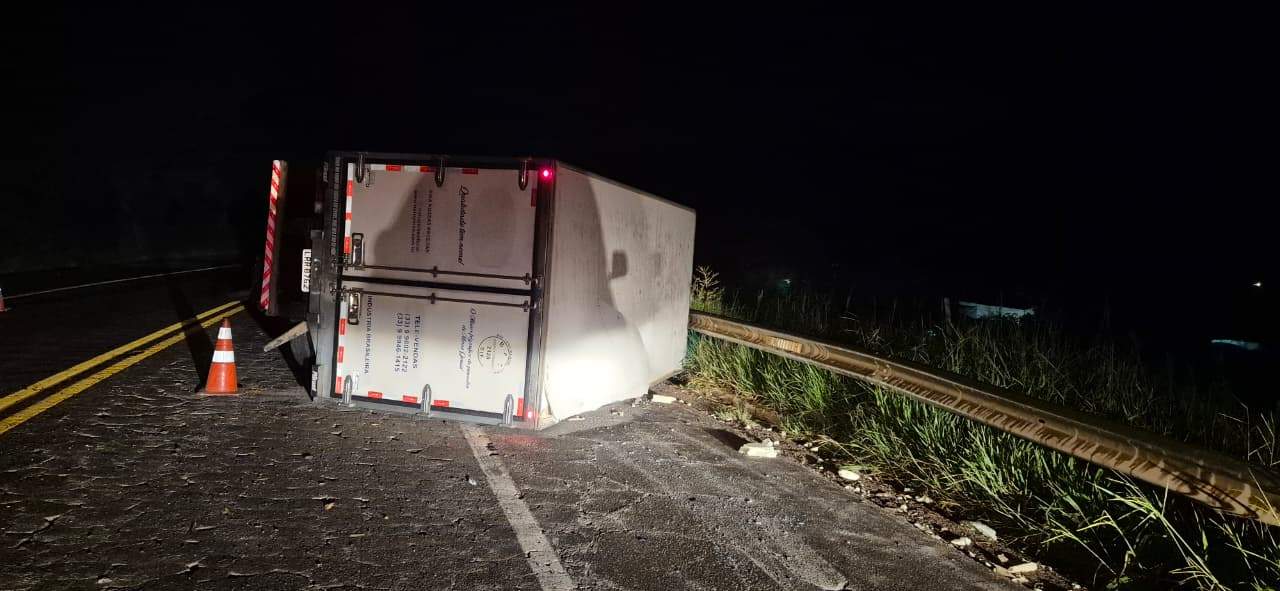 MATIPÓ (MG) - Um caminhão capotou na noite deste domingo (08/02) após o motorista perder o controle do veículo ao atingir um buraco na pista, no km 69,3 da BR-262, em Matipó. O acidente ocorreu por volta das 20h e não deixou vítimas.