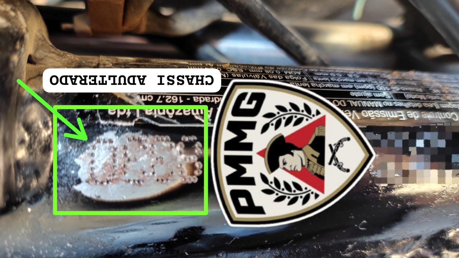 De acordo com a PM, durante o policiamento, os militares se depararam com o veículo em situação suspeita. Ao verificarem os sinais identificadores, foi constatado que o chassi apresentava indícios de supressão e remarcação, caracterizando, em tese, o crime de adulteração de sinal identificador de veículo automotor.