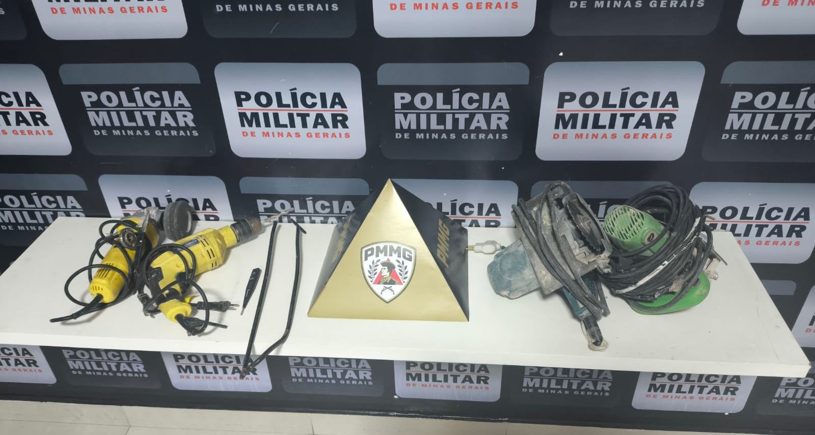 Foram recuperadas uma esmerilhadeira, duas serras mármore, uma furadeira e uma chave de teste elétrico, objetos reconhecidos pela vítima. O autor foi localizado na Rua Francisco Fialho e conduzido à Delegacia de Polícia Civil, juntamente com os materiais recuperados.