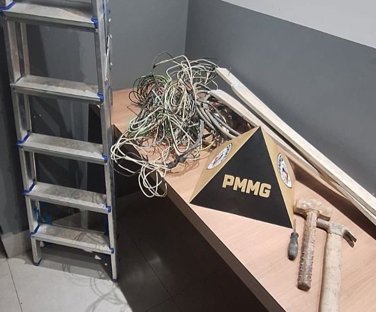 Durante diligências, os militares identificaram que um homem de 44 anos havia sido abordado anteriormente, ainda na madrugada, com uma mochila contendo ferramentas e apresentando versões contraditórias sobre a origem dos materiais.