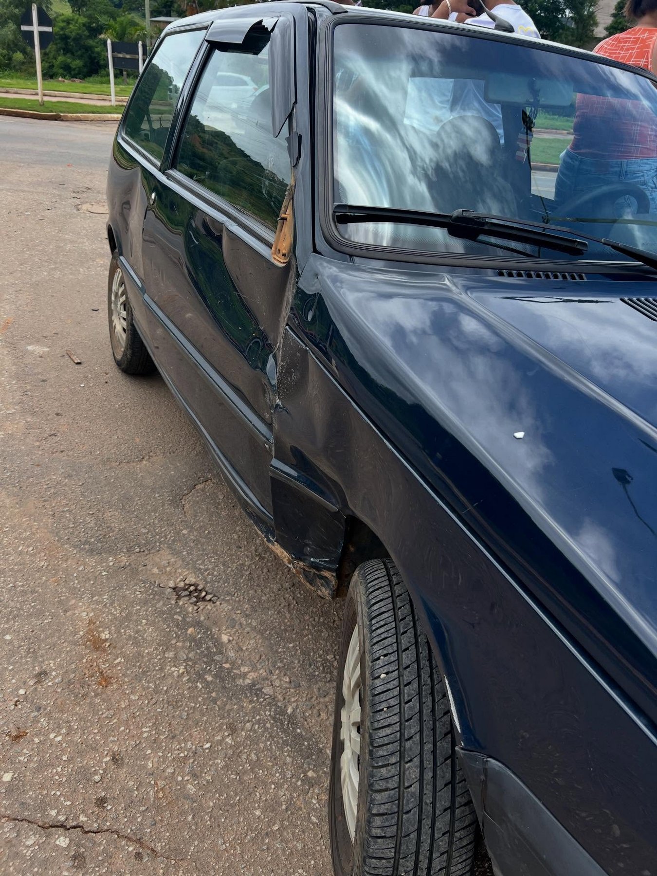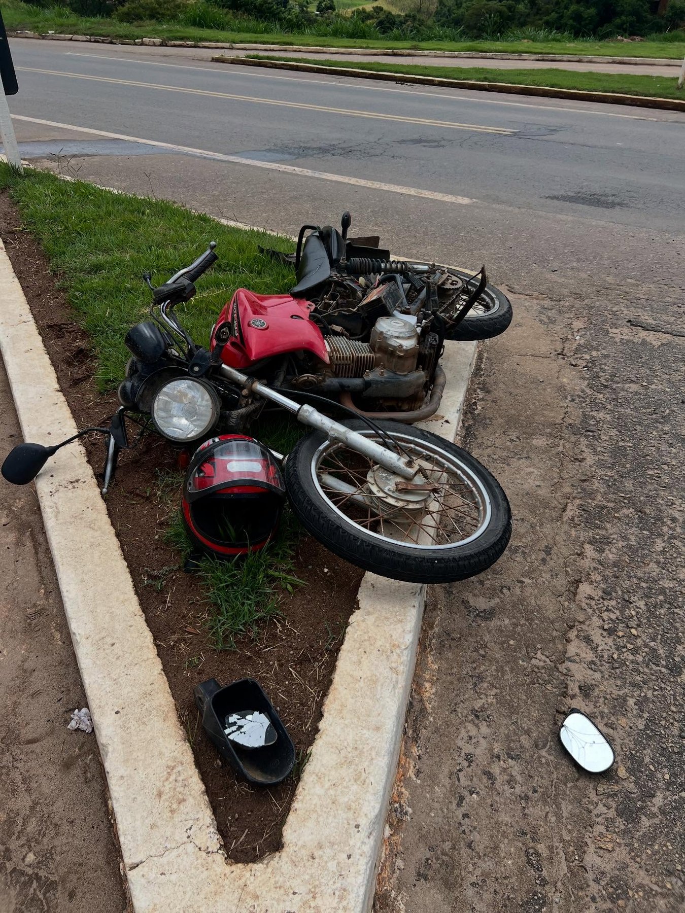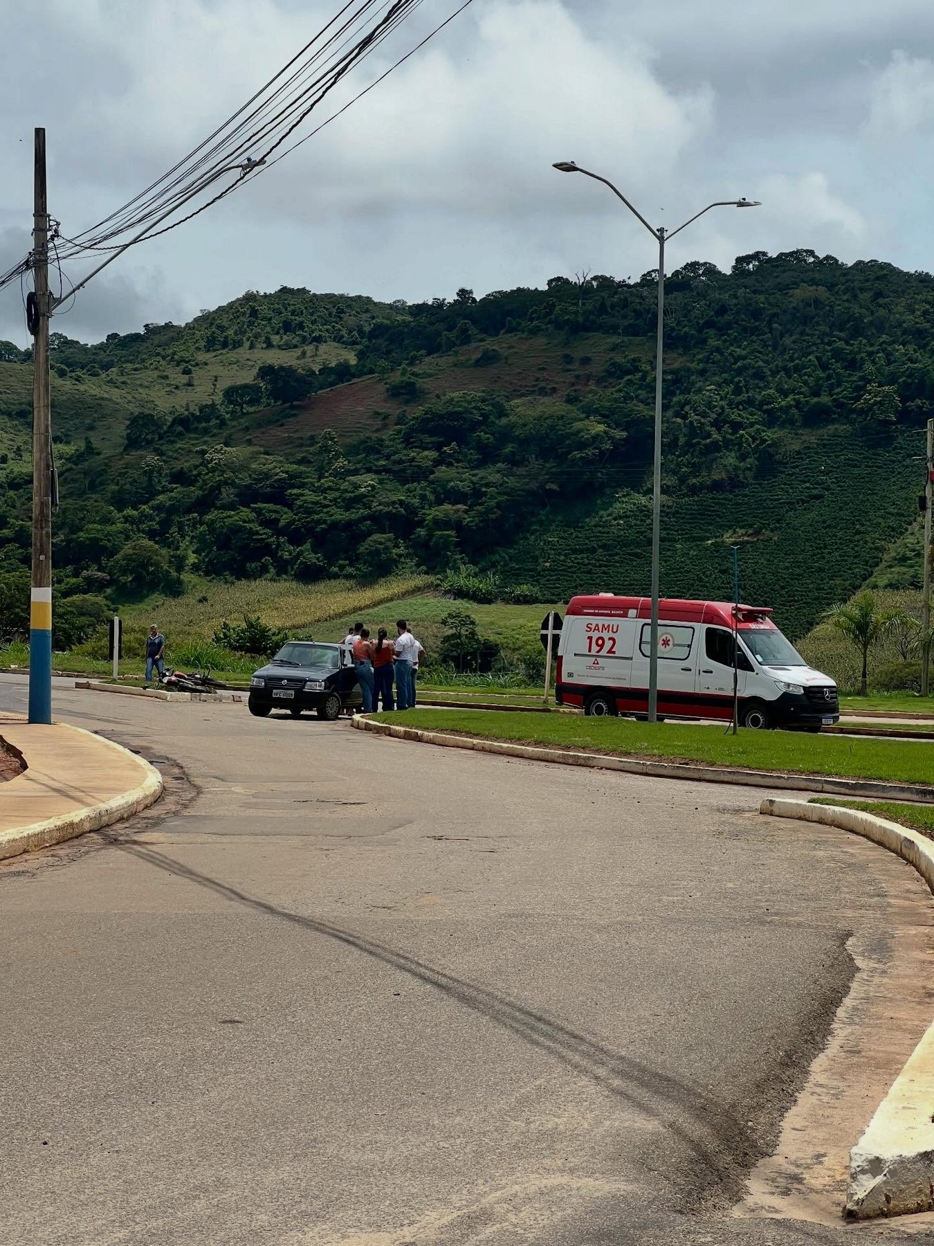 Acidente entre moto e Uno deixa rapaz ferido no trevo de Abre Campo