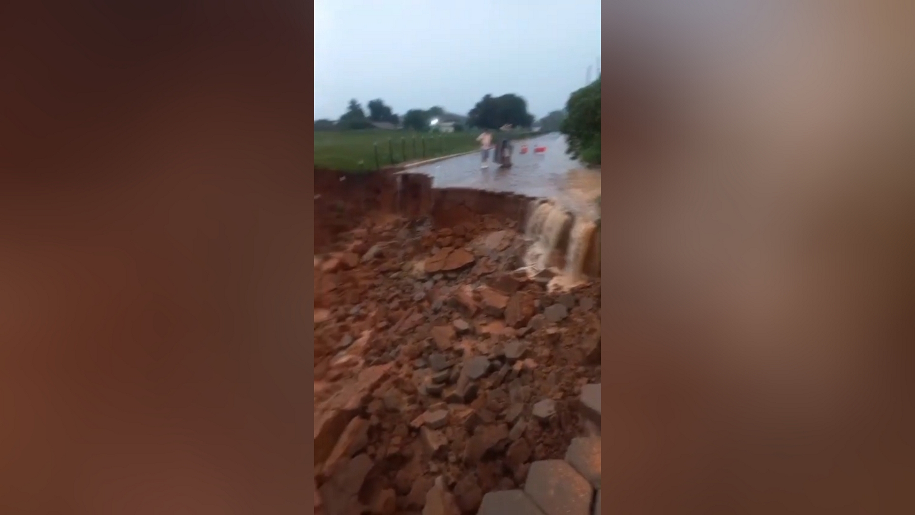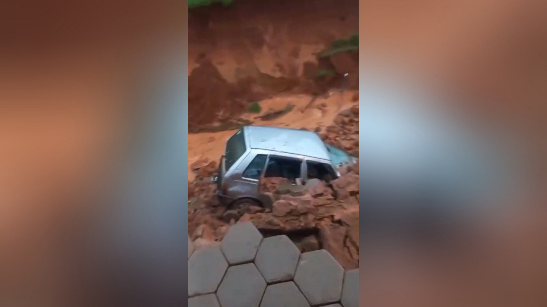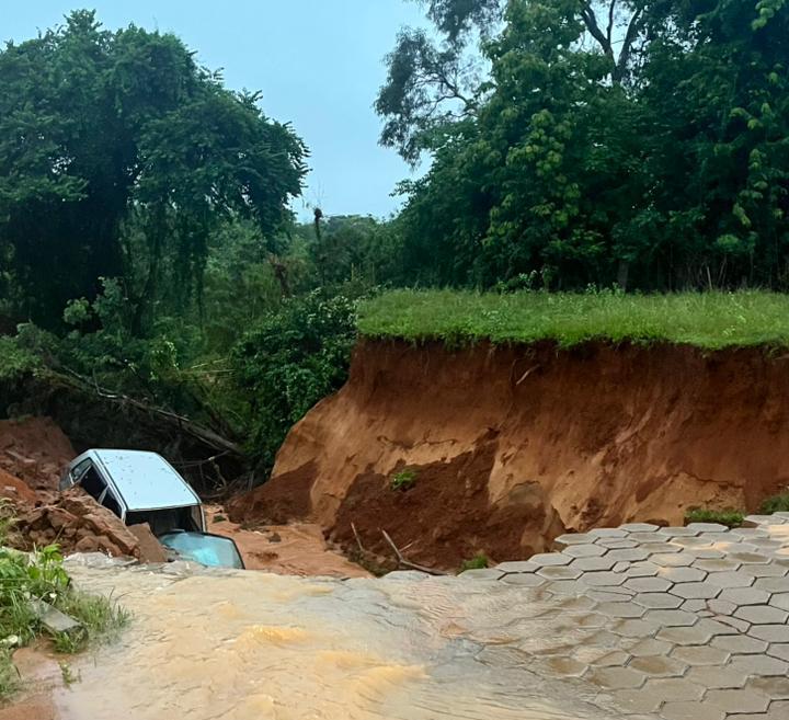 Na estrada que liga Taparuba para a comunidade de Três Barras, uma cratera se abriu e puxou um carro que passava no local. O motorista não sofreu ferimentos.