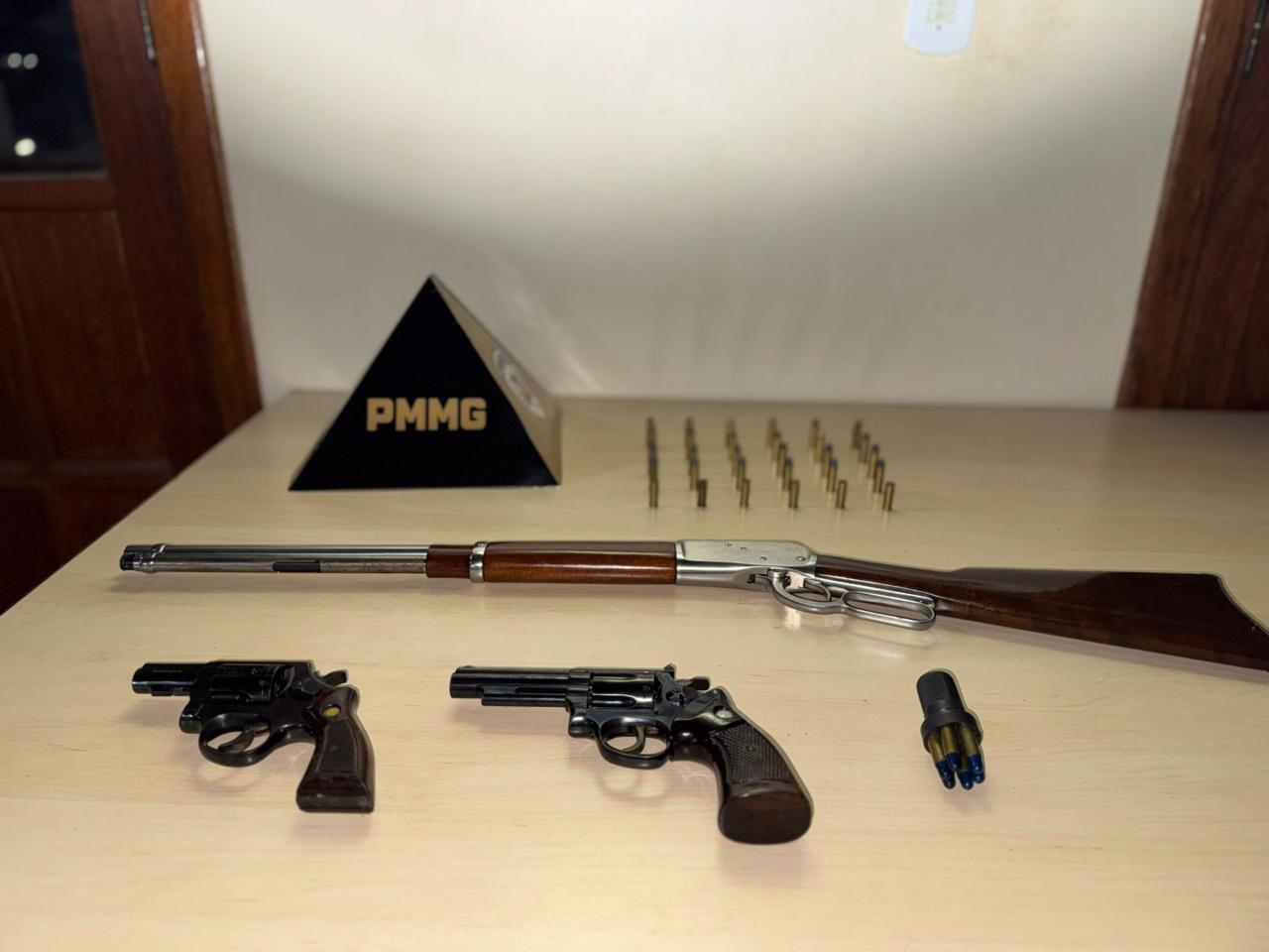 Ao todo, foram apreendidos uma carabina calibre .38, um revólver calibre .357, um revólver calibre .38, 30 munições de calibres .38 e .357, um dispositivo de recarga rápida e sete cartuchos deflagrados.
