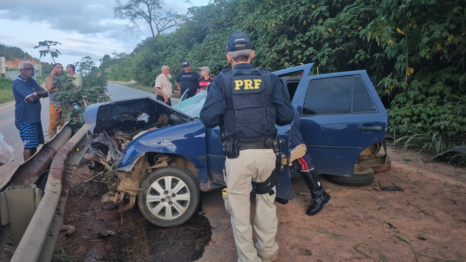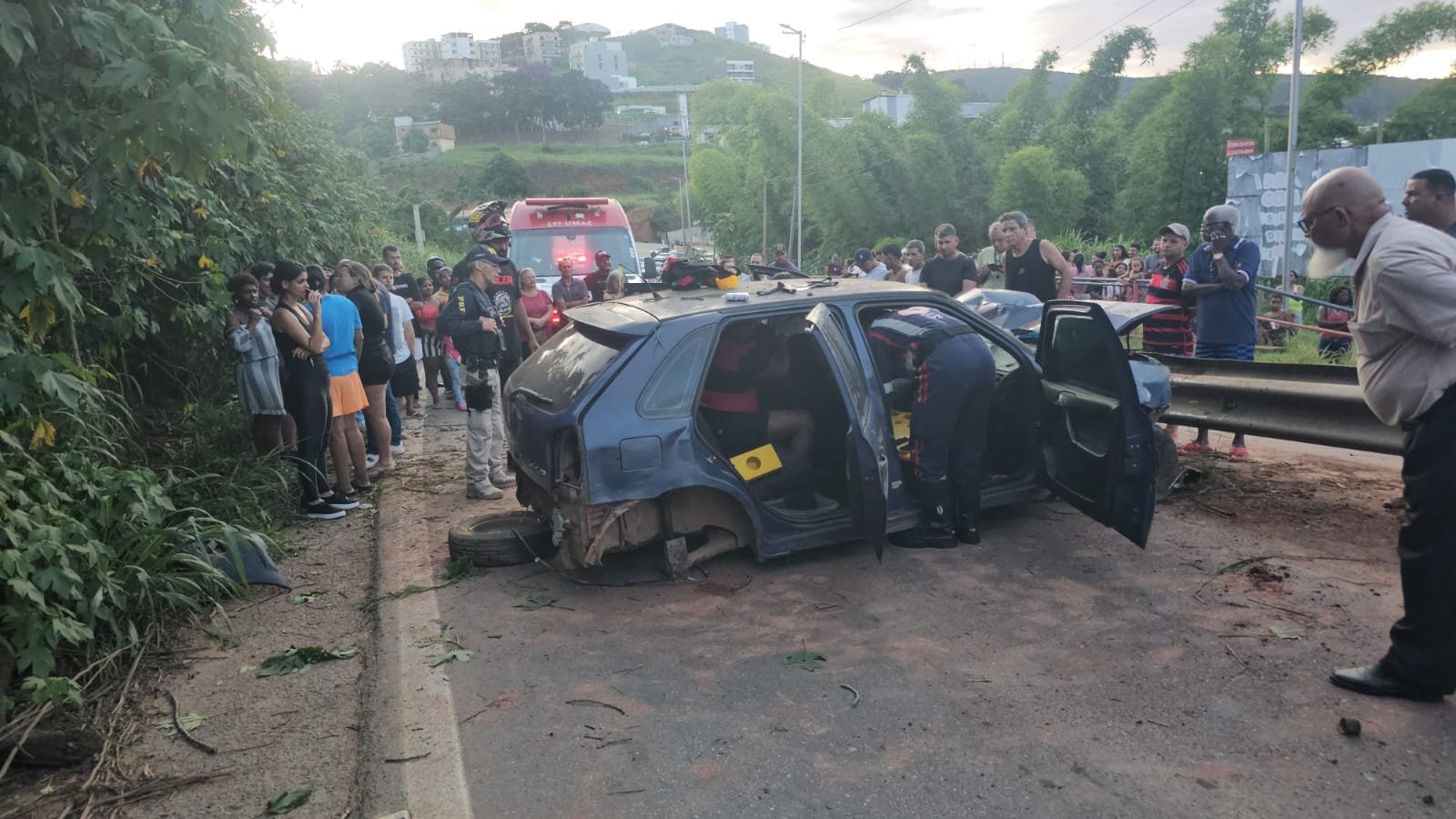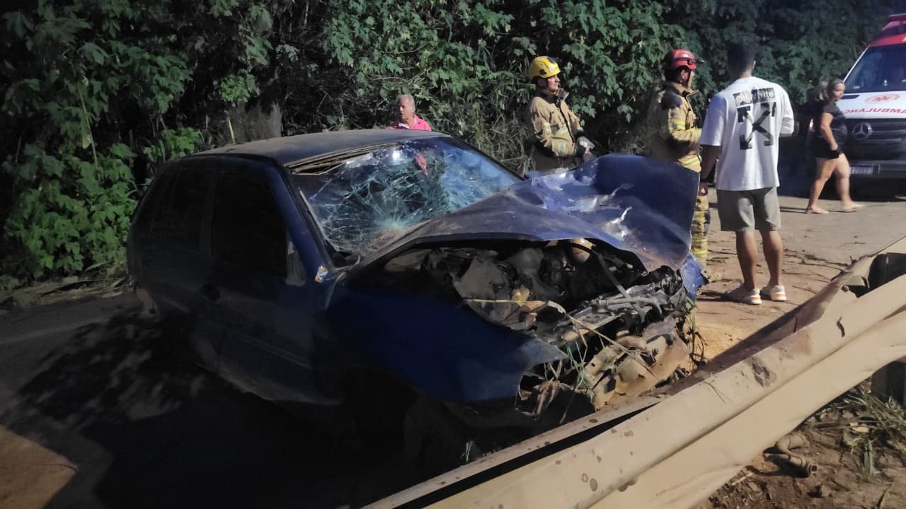 De acordo com as informações, o condutor perdeu o controle da direção do veículo, colidiu contra um barranco às margens da rodovia e, em seguida, atingiu a defensa metálica que divide a pista. O impacto foi considerado violento.