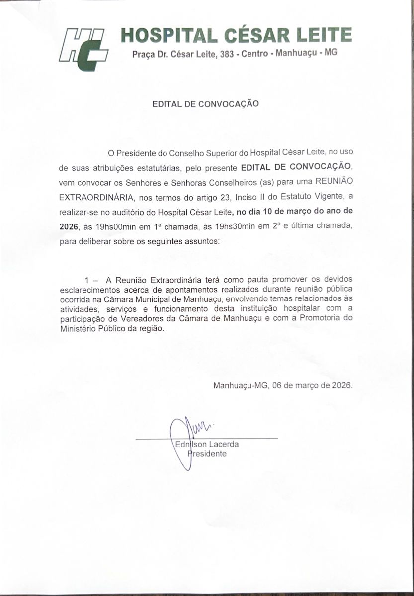 Edital de Convocação - Reunião Extraordinária do Conselho Superior 10 de março