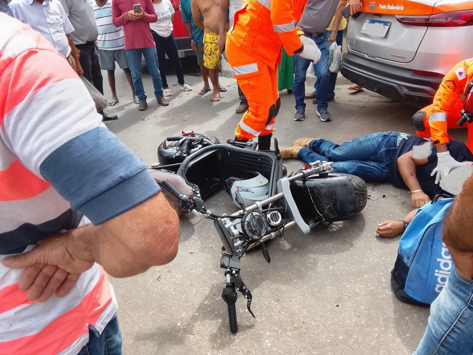 De acordo com as informações, uma motocicleta seguia pela Avenida Melo Viana quando o condutor de um automóvel atravessou a via, ocorrendo a colisão.