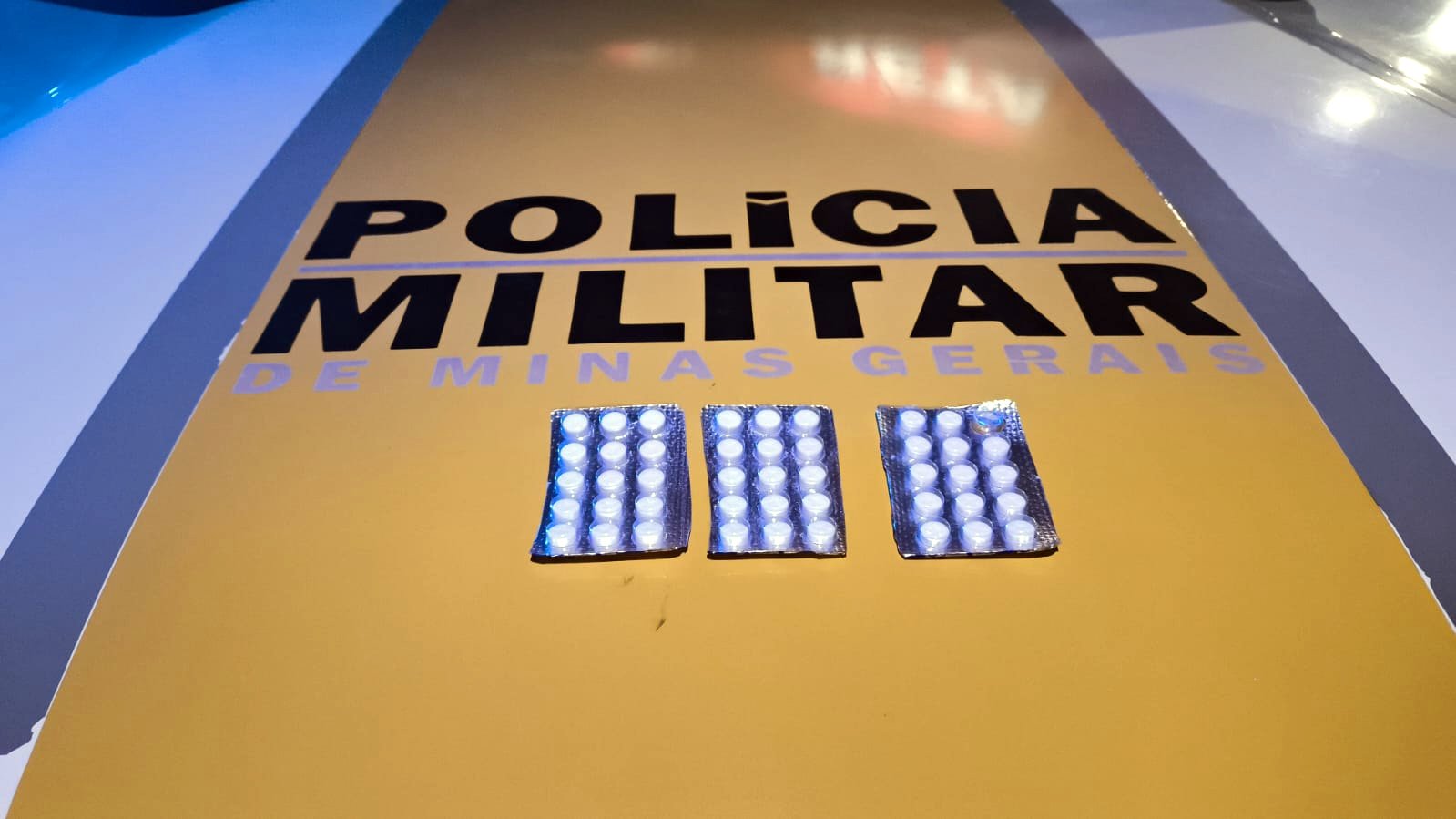 Durante buscas no interior do carro, os militares localizaram 44 comprimidos de Nobésio, conhecido como “rebite”, escondidos no quebra-sol do lado do motorista. O condutor assumiu ser o proprietário do material.