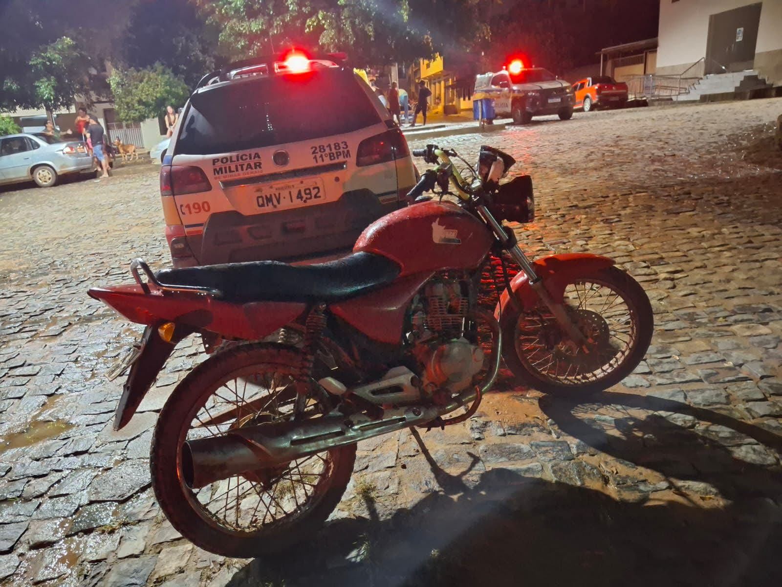 SANTANA DO MANHUAÇU (MG) - A Polícia Militar de Minas Gerais apreendeu, na noite deste domingo, dia 22, uma motocicleta que apresentava diversas irregularidades e indícios de adulteração no Povoado de Santa Quitéria, zona rural de Santana do Manhuaçu.