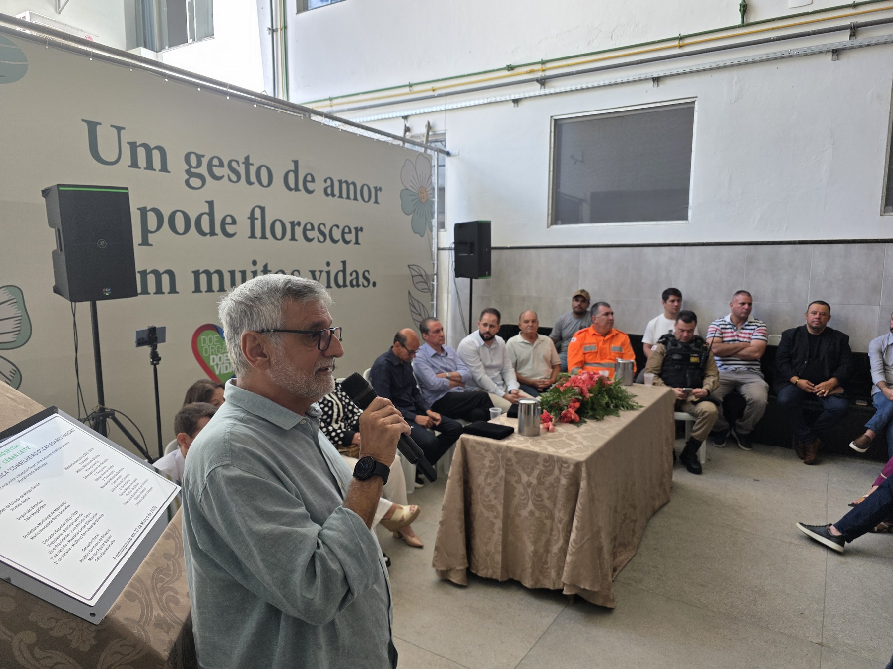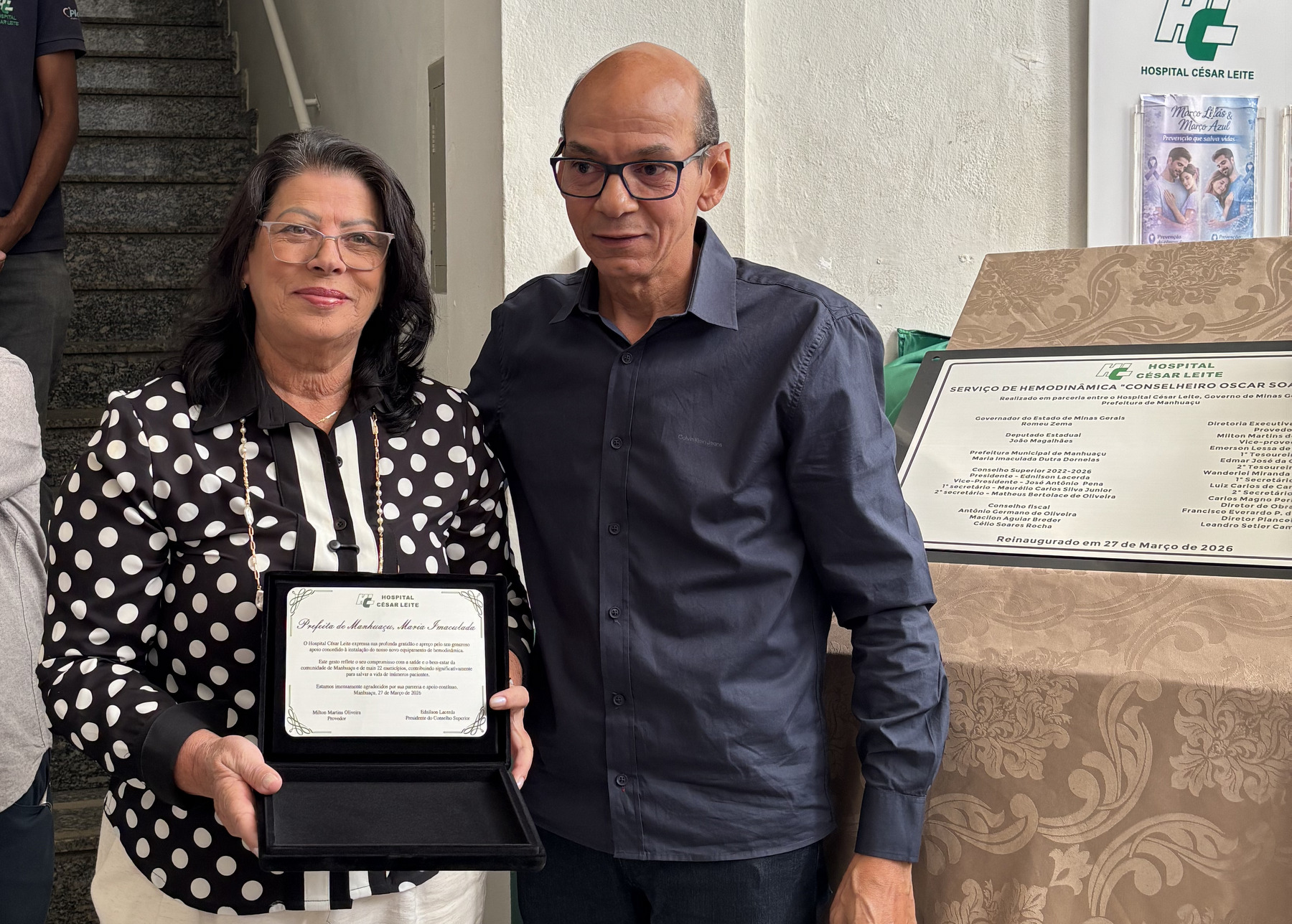 Participaram do evento o provedor do hospital, Milton Martins de Oliveira; o presidente do Conselho Superior do HCL, Ednilson Lacerda; o deputado estadual João Magalhães; a prefeita de Manhuaçu, Maria Imaculada Dutra Dornelas; o diretor da Superintendência Regional de Saúde, Victor Carvalho Vieira, representando o secretário de Estado de Saúde, Fábio Baccheretti; a presidente da Câmara Municipal, vereadora Rose Mary Catta Preta; o superintendente do HCL, Otávio Jaerce Bragança; presidente do Conselho Municipal de Saúde, Nelson de Abreu, o médico Dr. Vinícius Valentim, do Serviço de Hemodinâmica; a diretora técnica do hospital, Dra. Daniela Alves, o Capitão Lima, do Corpo de Bombeiros, e o Tenente Mendonça, do 11º Batalhão de Polícia Militar.