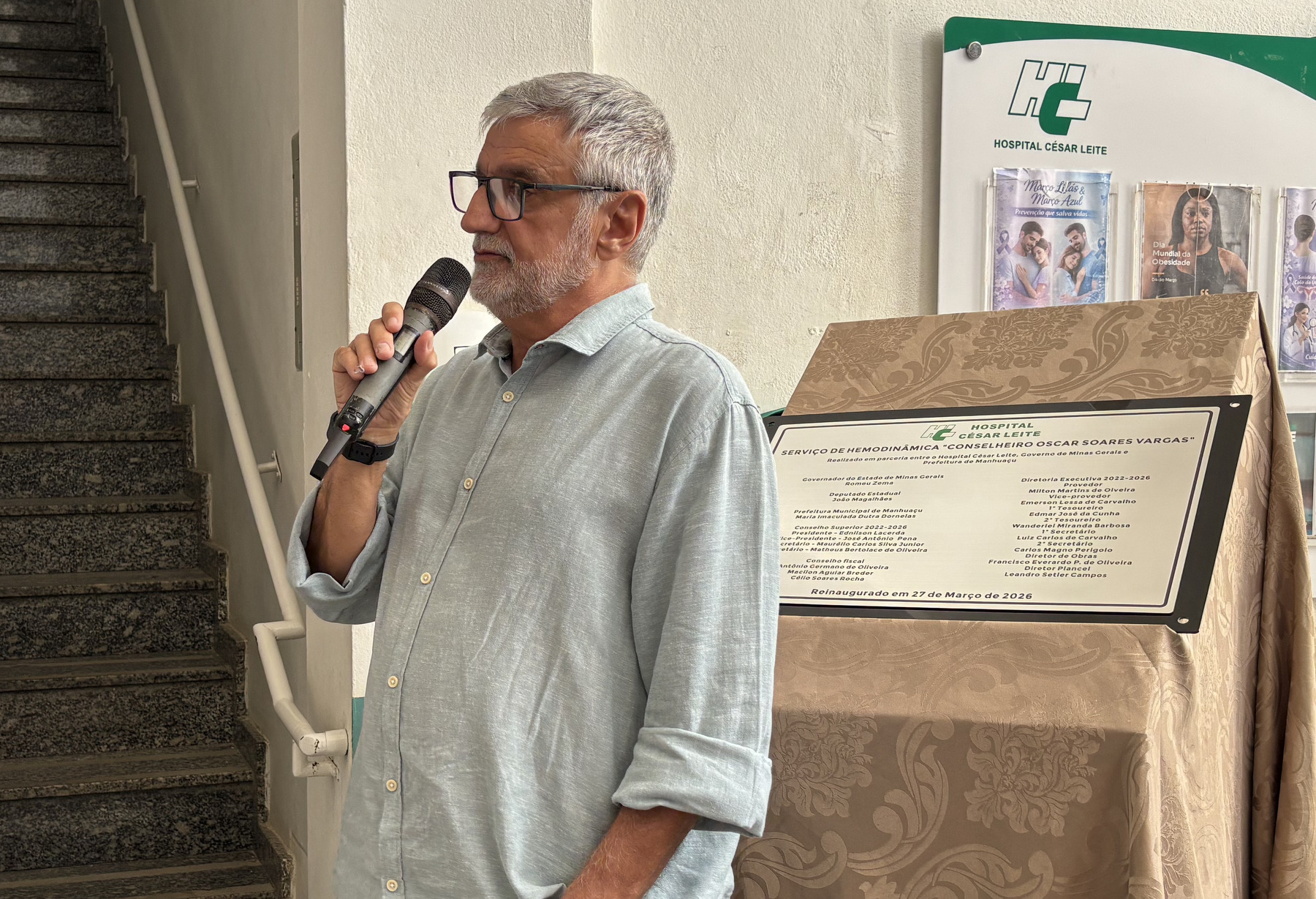 MANHUAÇU (MG) - O Hospital César Leite realizou na manhã desta sexta-feira (27) a reinauguração do Serviço de Hemodinâmica, com um novo equipamento essencial para o atendimento de pacientes com doenças cardiovasculares na região. A cerimônia reuniu autoridades locais, representantes da saúde e lideranças políticas.