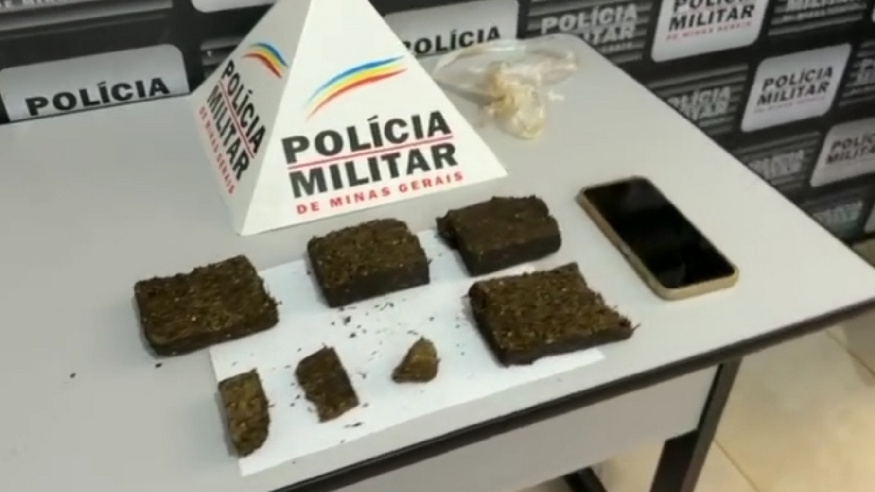 Foram apreendidos sete tabletes de material ilícito, que serão encaminhados para análise.