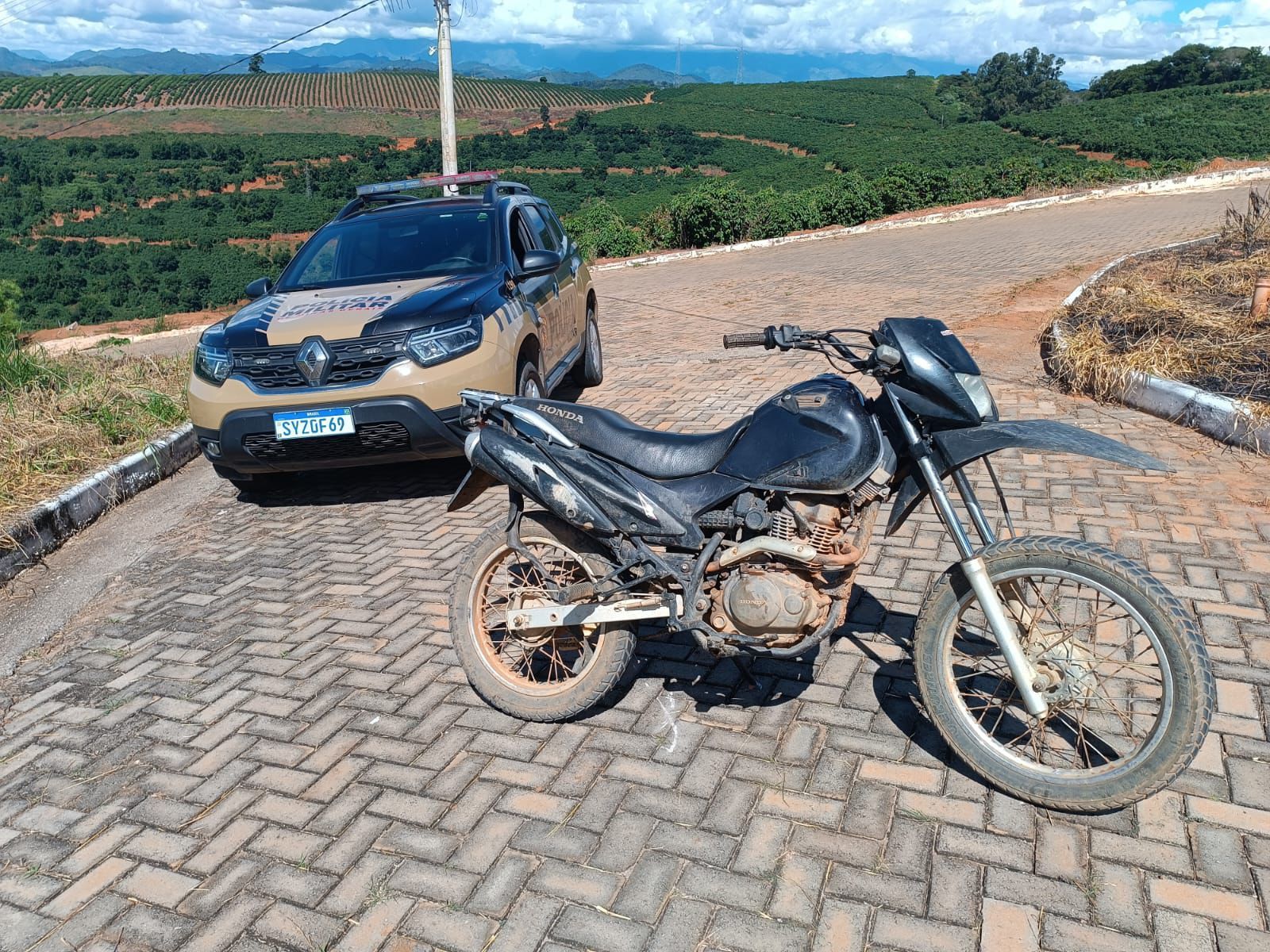 O veículo, uma motocicleta Honda Bros de cor preta, foi recuperado e removido ao pátio credenciado do Detran.