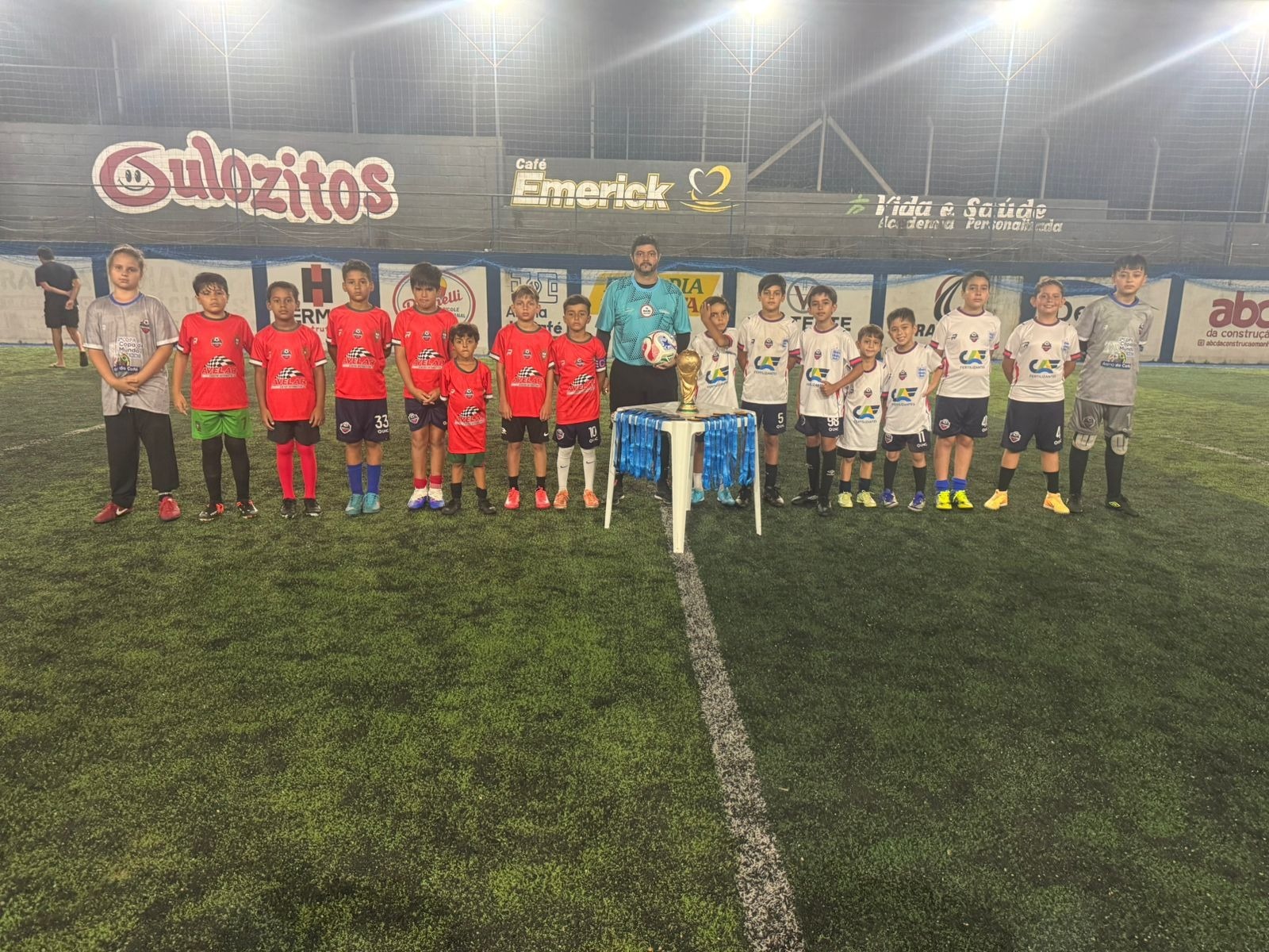 Com uma proposta inspirada no formato da Copa do Mundo, os times entraram em campo representando diferentes seleções, o que deixou a competição ainda mais envolvente para os atletas. As partidas foram marcadas por gols, comemorações e, principalmente, pela alegria das crianças em vivenciar o futebol de forma leve e organizada.
