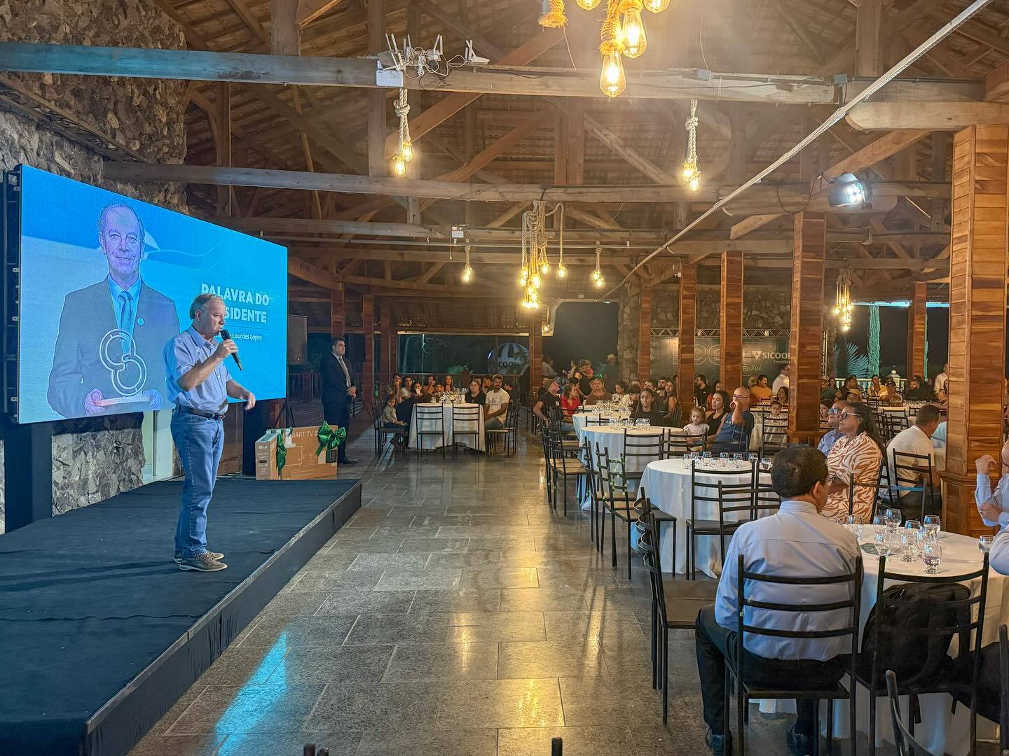 Ao longo da programação, os participantes acompanharam um panorama atualizado do cooperativismo no mundo, no Brasil e, especialmente, na atuação da cooperativa na região. Foram apresentados os principais resultados alcançados em 2025, reforçando o compromisso da instituição com uma gestão transparente, responsável e alinhada aos princípios cooperativistas. Também foram destacadas ações desenvolvidas durante o ano, evidenciando o impacto positivo da cooperativa nas comunidades onde está presente.