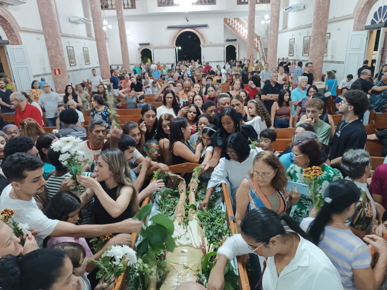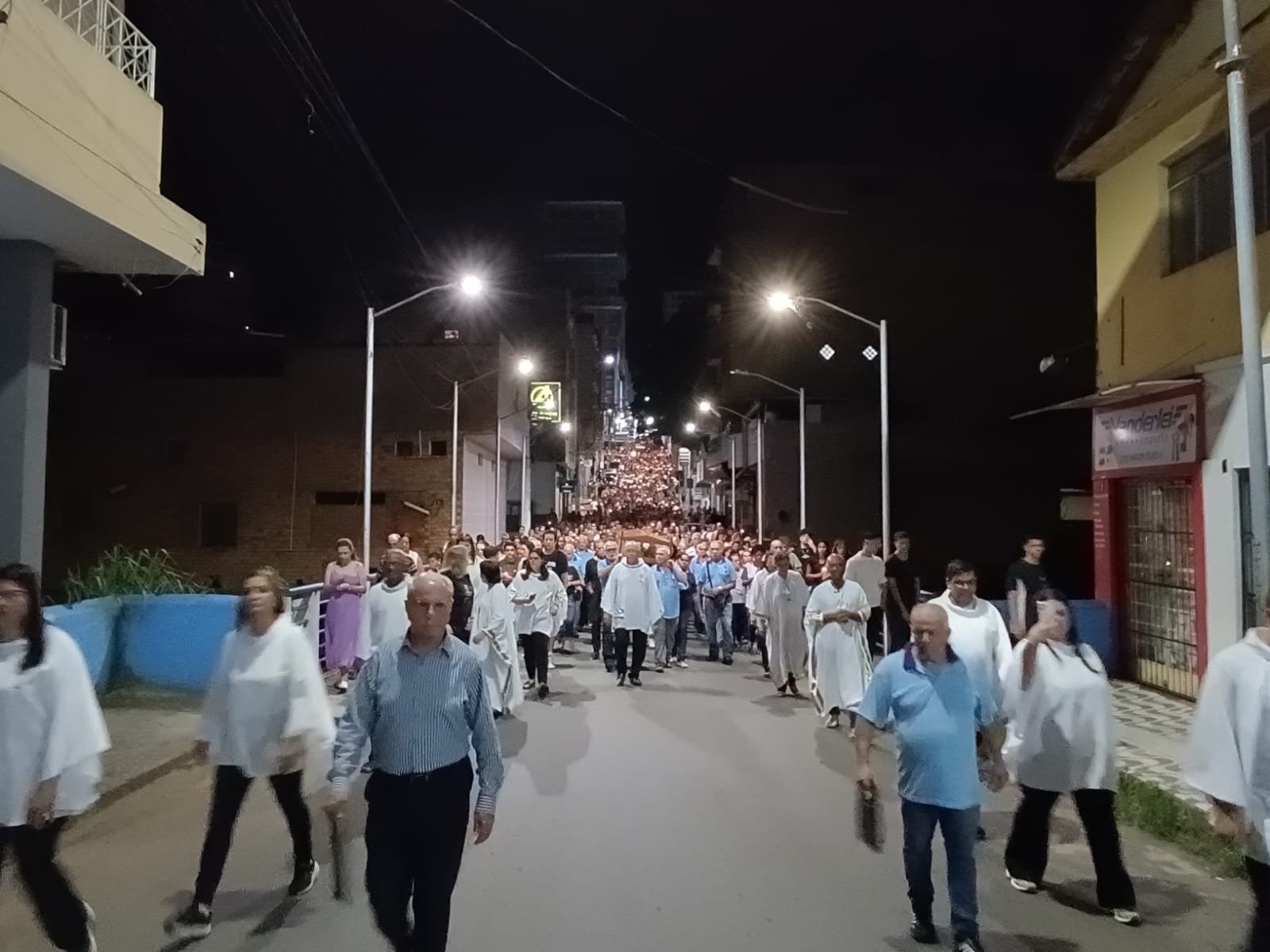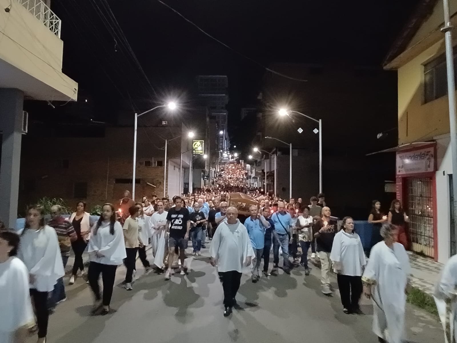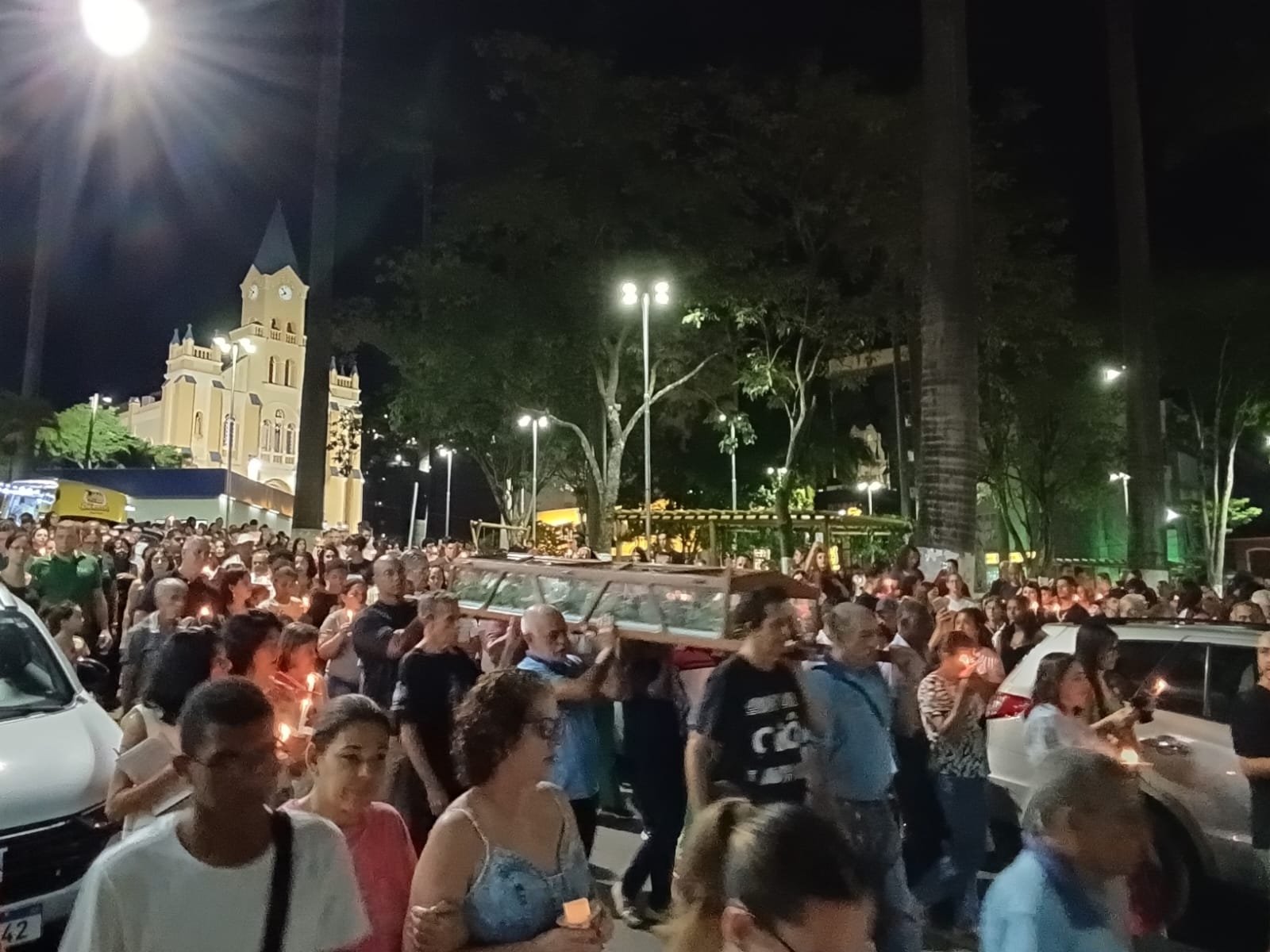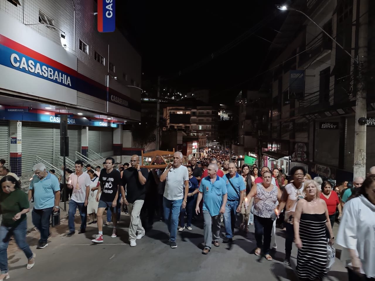 Pelas ruas da cidade, em oração e fé, os fieis acompanharam fervorosos a Procissão do Senhor Morto. Oportunidade para os católicos viverem publicamente a fé e se unirem em oração, relembrando a doação de Jesus pela humanidade. Ao retornarem à Matriz, todos puderam pegar um ramo sobre o corpo de Jesus Cristo, pois se trata de um costume popular de devoção. Esses ramos, benzidos pelo toque na imagem, são levados para casa como símbolos de proteção, perfumando e abençoando o lar.