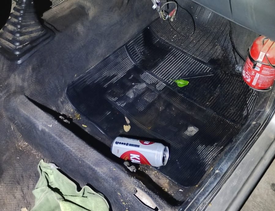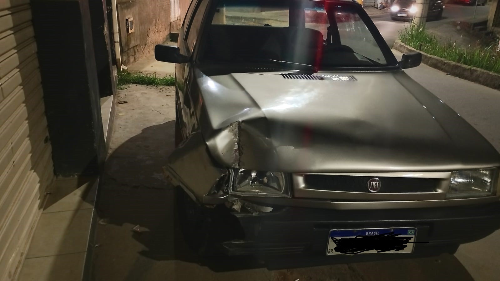 Durante a fiscalização, também foi verificado que o automóvel apresentava danos na parte frontal direita, após colidir contra a lateral de um estabelecimento comercial.