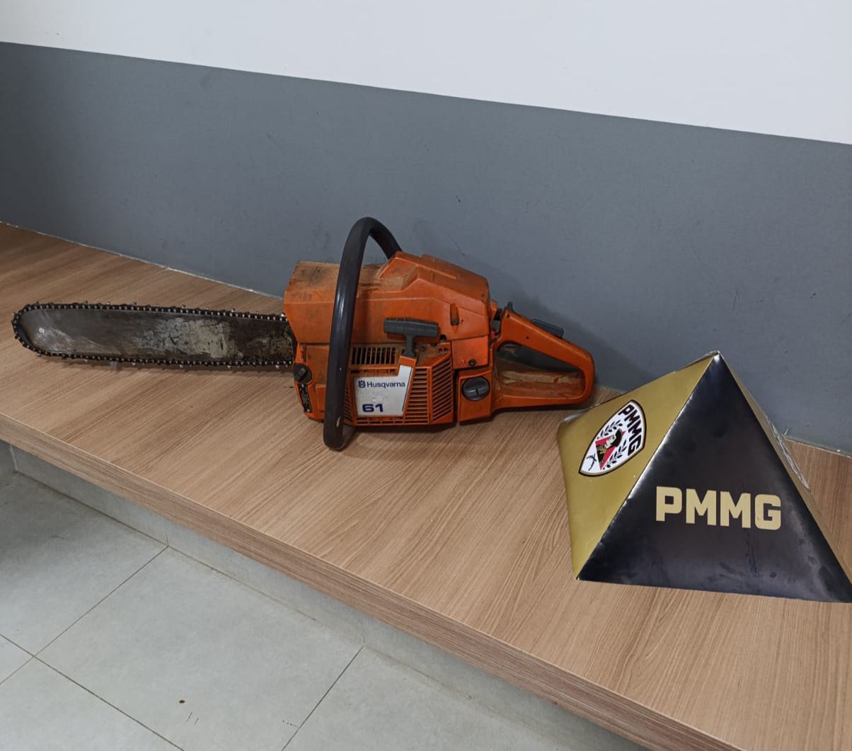 De acordo com a Polícia Militar, a abordagem ocorreu durante patrulhamento na Rua Joaquim Serafim Alves, quando o suspeito foi visto transportando uma motosserra e tentou fugir ao perceber a presença dos militares.
