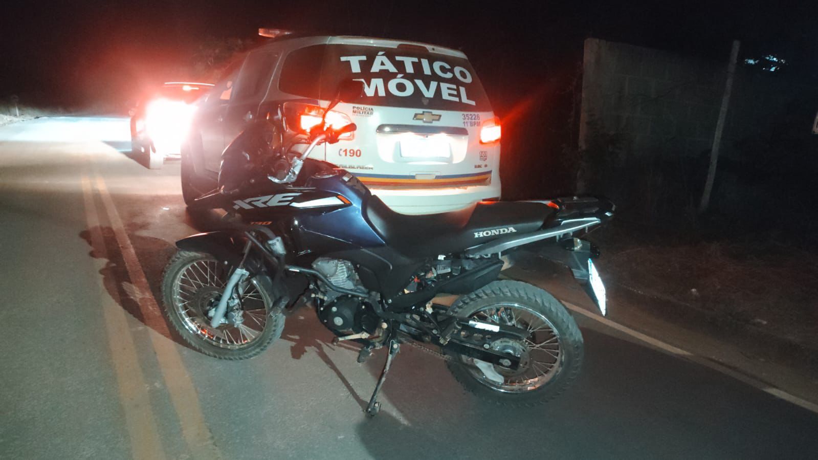 Durante diligências no Córrego Cabeceira de Santana, os militares localizaram o autor em posse de uma motocicleta. Após fiscalização, foi constatado que o veículo apresentava sinais de adulteração no chassi, além de irregularidades na identificação da placa.
