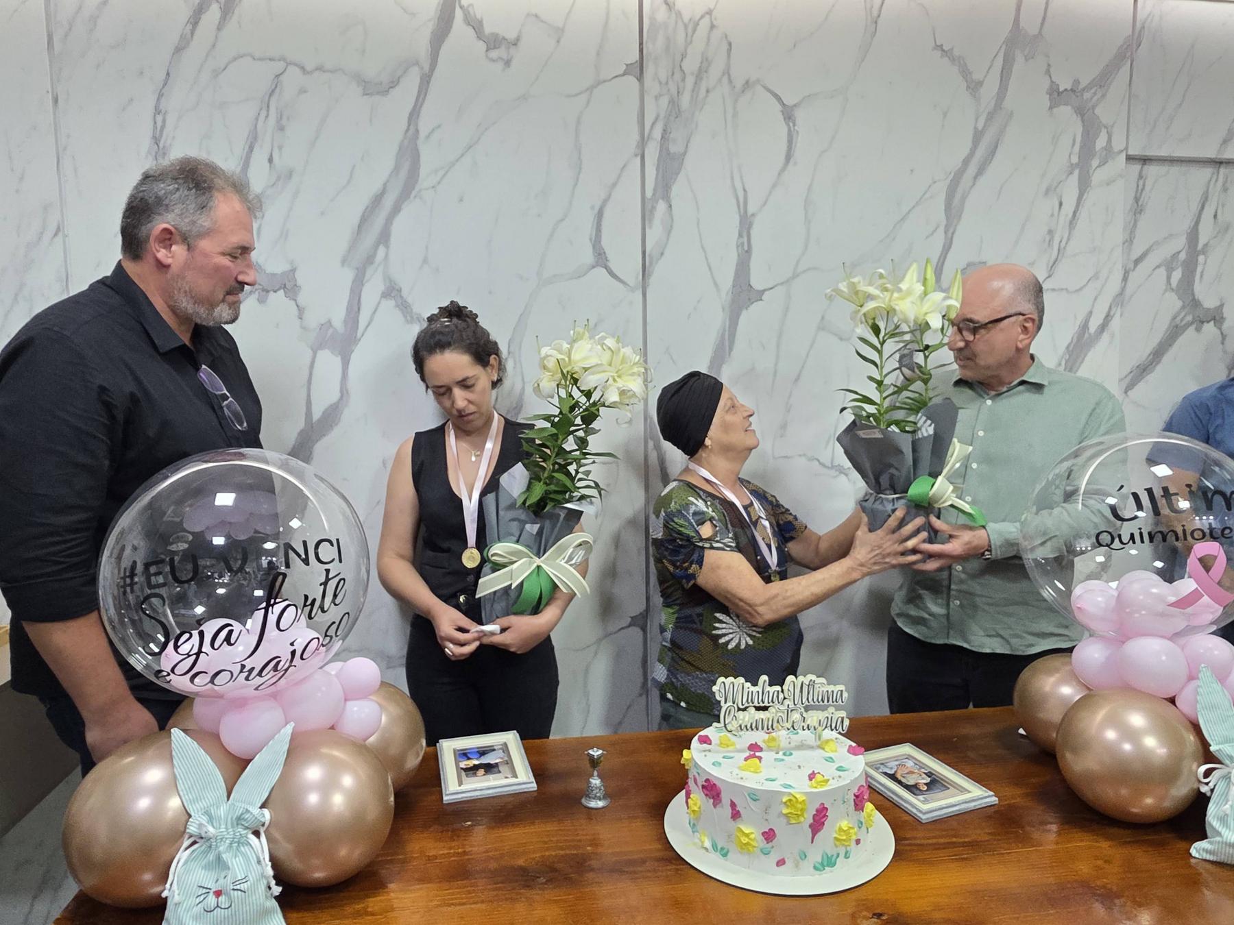 A homenagem contou com a participação dos familiares de Dona Élida e Jéssica, primeiras pacientes a receberem alta do tratamento de quimioterapia, bem como a participação de conselheiros e da equipe do Serviço de Oncologia.
